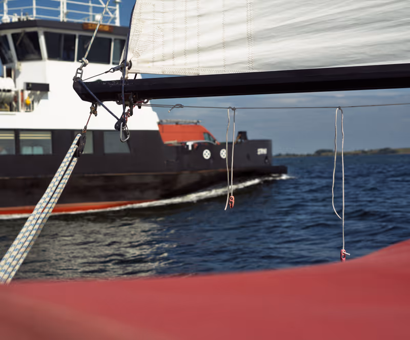 Once I passed the big bridge near Halsskov, the wind picked up a bit more than I was expecting and there was also a lot more traffic than I thought there would be… My original target was to go to Langør in Samsø, but it felt a bit too much to restart with. Instead, I tried to aim for Keterminde and to go shelter near the shore there, but I was taking too long and was a bit too much close-hauled to be comfortable. So instead I decided to go anchor near a small island: Musholm. I had hoped to go for a quick swim in the morning to clean a bit of the hull, but as I came closer and closer to this tiny island, I saw a group of fishing farms… I found a series of mooring buoys over there so I didn't even have to drop my anchor in the fish shit, which was quite pleasant. I also decided to skip the morning dip for the same reason 😅.