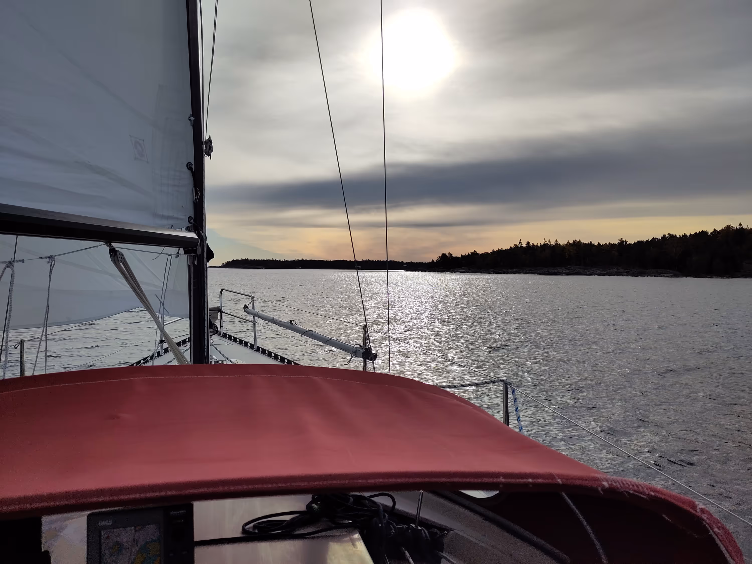 I took a reef before exiting the islands and entering the bay. That was a long passage but a rather nice and steady one. Although toward the end of that, the wind was more gusty and changing direction at times.