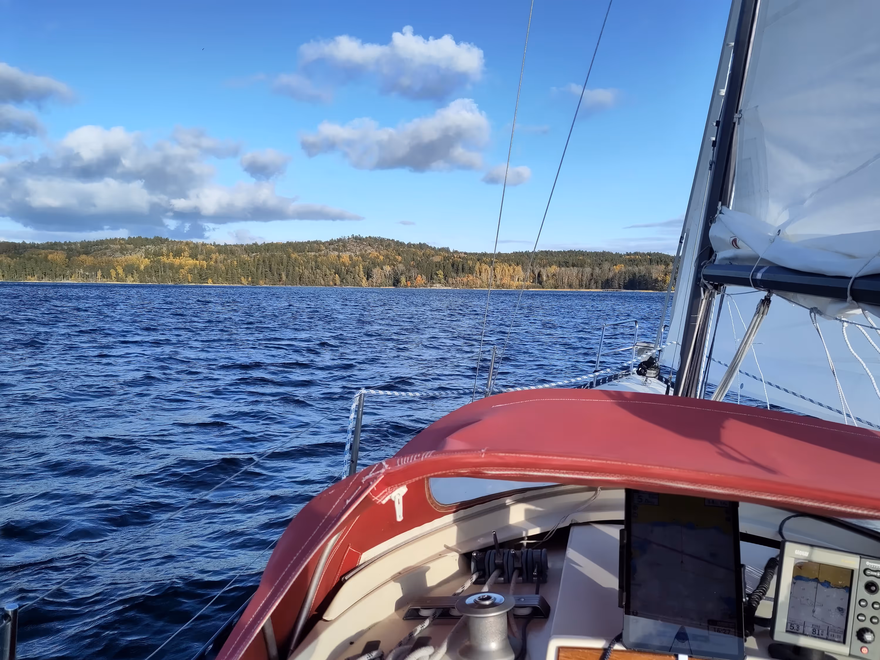 With a northerly wind somewhat stronger than expected, I set up from Nynäshamn and sailed broad reach towards the South. I then turned to the West and zigzagged through tiny passages between the islands before doubling the well-known Fifång and shouting North in the Himmerfjärden.