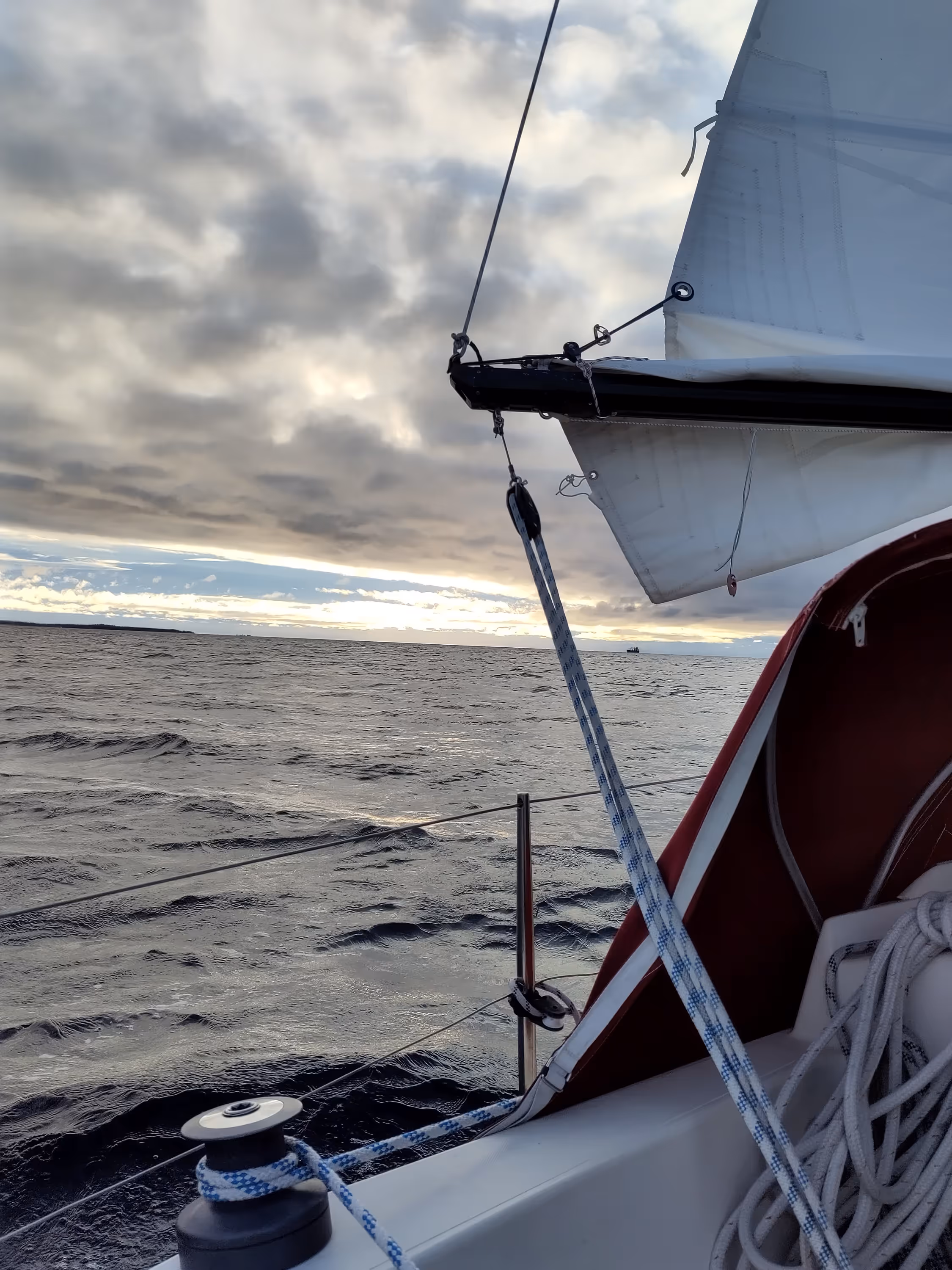 There was a lot of wind forecasted, and as I was leaving the archipelago, I took a second reef on my mainsail to be ready (lesson learned from previous times 😅). However, that was not enough…