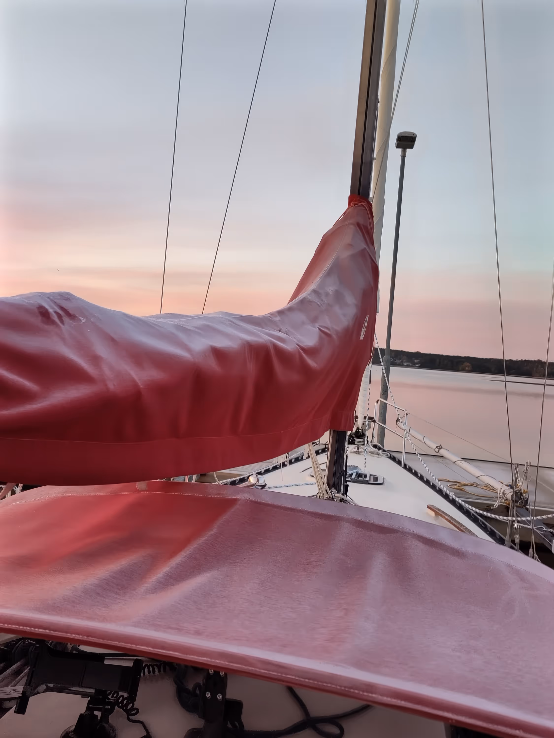 So this morning, I woke up to the first frost of autumn… Not really a welcome sight… Anyway, I've filled up the petrol and the water tank, prepared a soup for lunch, a big herbal tea for the sailing and then breakfast.
