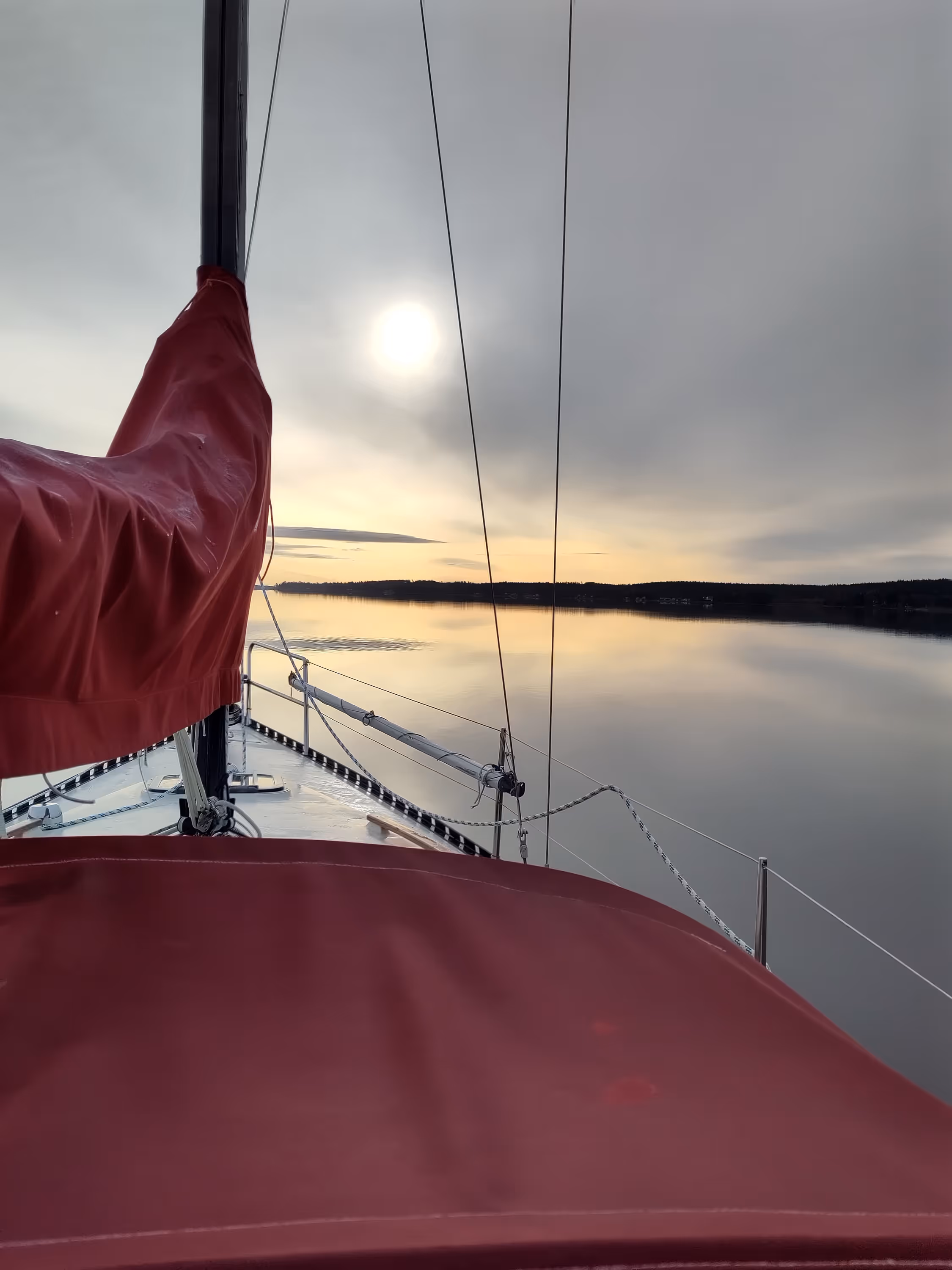 So, after leaving Hudiksvall in the most complete freezing calm, the wind picked up with in my face with a strong sea and stream. As a result, it took me 5h and 25 nm of sailing to barely win 15 nm of southing in a pouring rain…