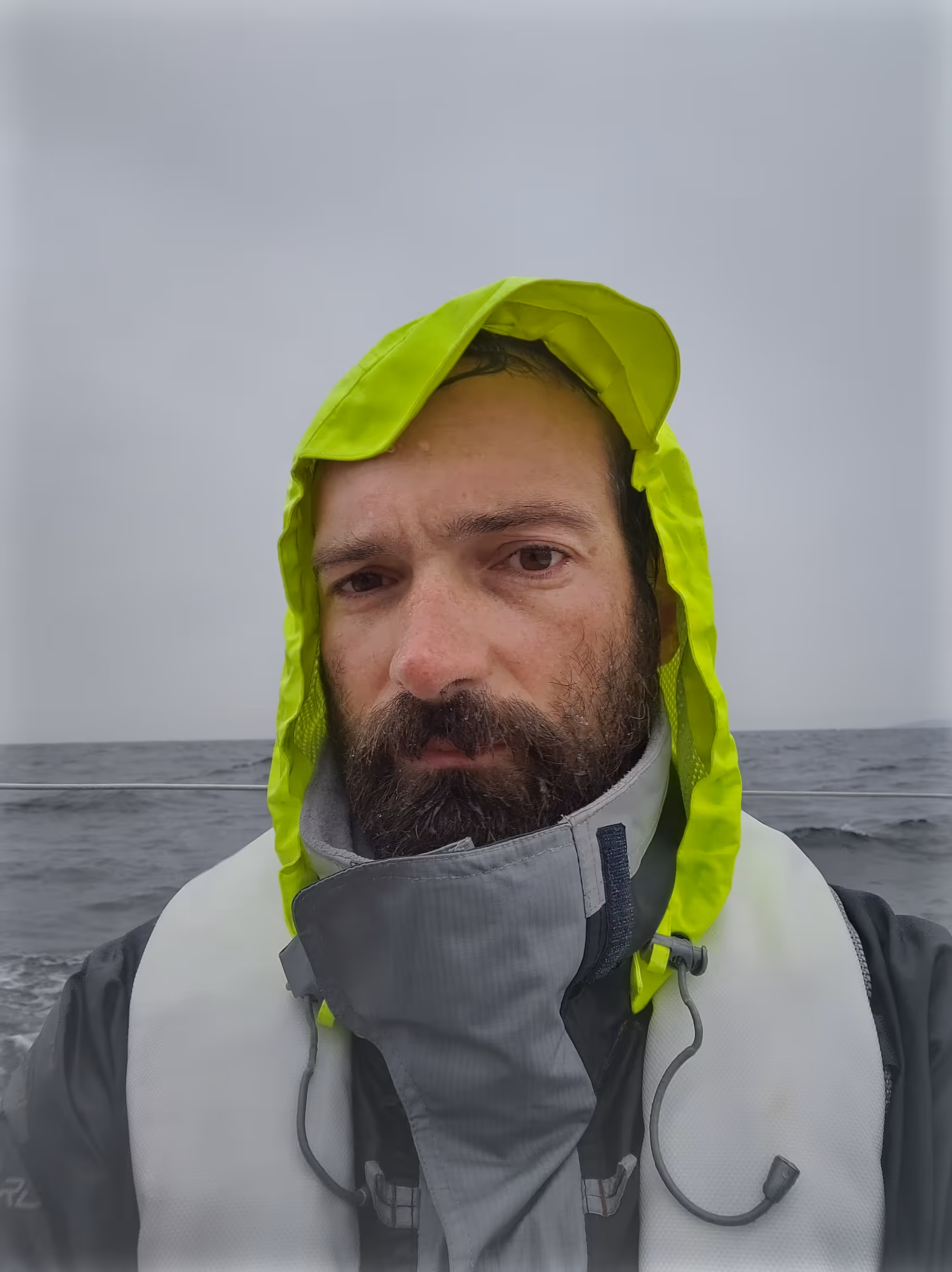 This was a tiring day. Lots of rain, lots of waves, some fog, then a lot of fog, some wind, no wind, lots of wind, meh wind, ... the only consistency: wind in my face.