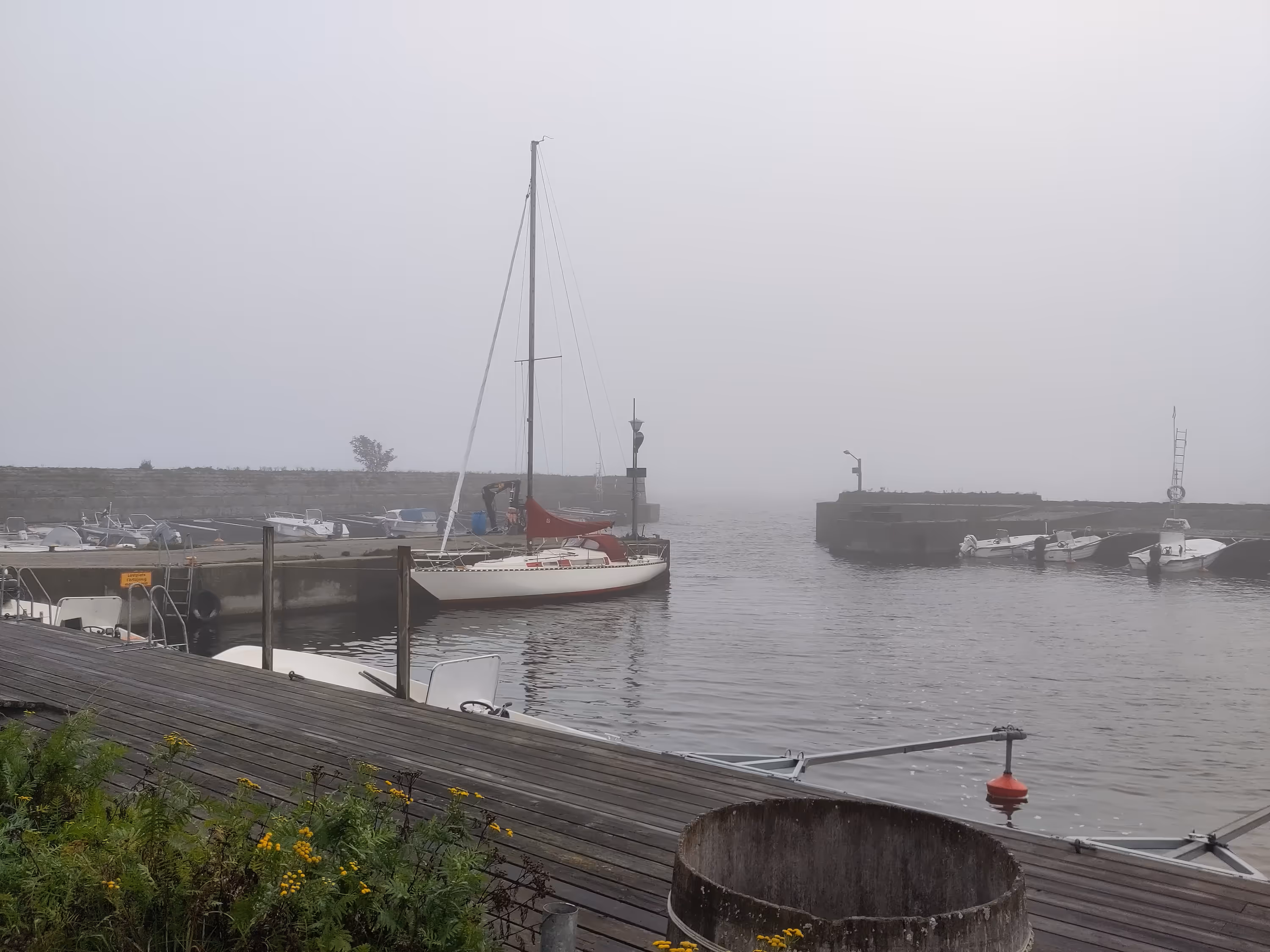 Finally, I had to cut it short and shelter from a rapidly engulfing fog into a small harbour, mostly deserted.