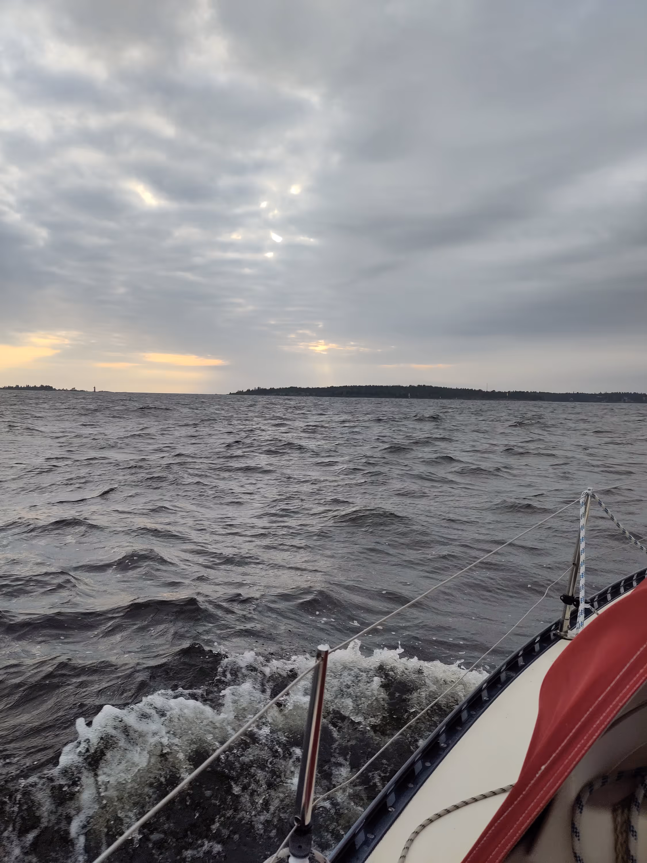 It was all rather ok albeit not comfy: there was a lot of swell and little wind to help stabilise the boat. After a couple of hours of broad reach zigzagging between rocks, I arrived in more open waters. At that point, a new sea started to set in, coming from the other way and a quite big one at that. After a bit the wind died down and I was left hanging in the big waves. Fortunately that didn't last too long and the wind picked up again, right in my teeth and gusty. That didn't really help with the comfort part of it but once the wind settled a bit I was able to sail more happily toward Umeå and here I am.