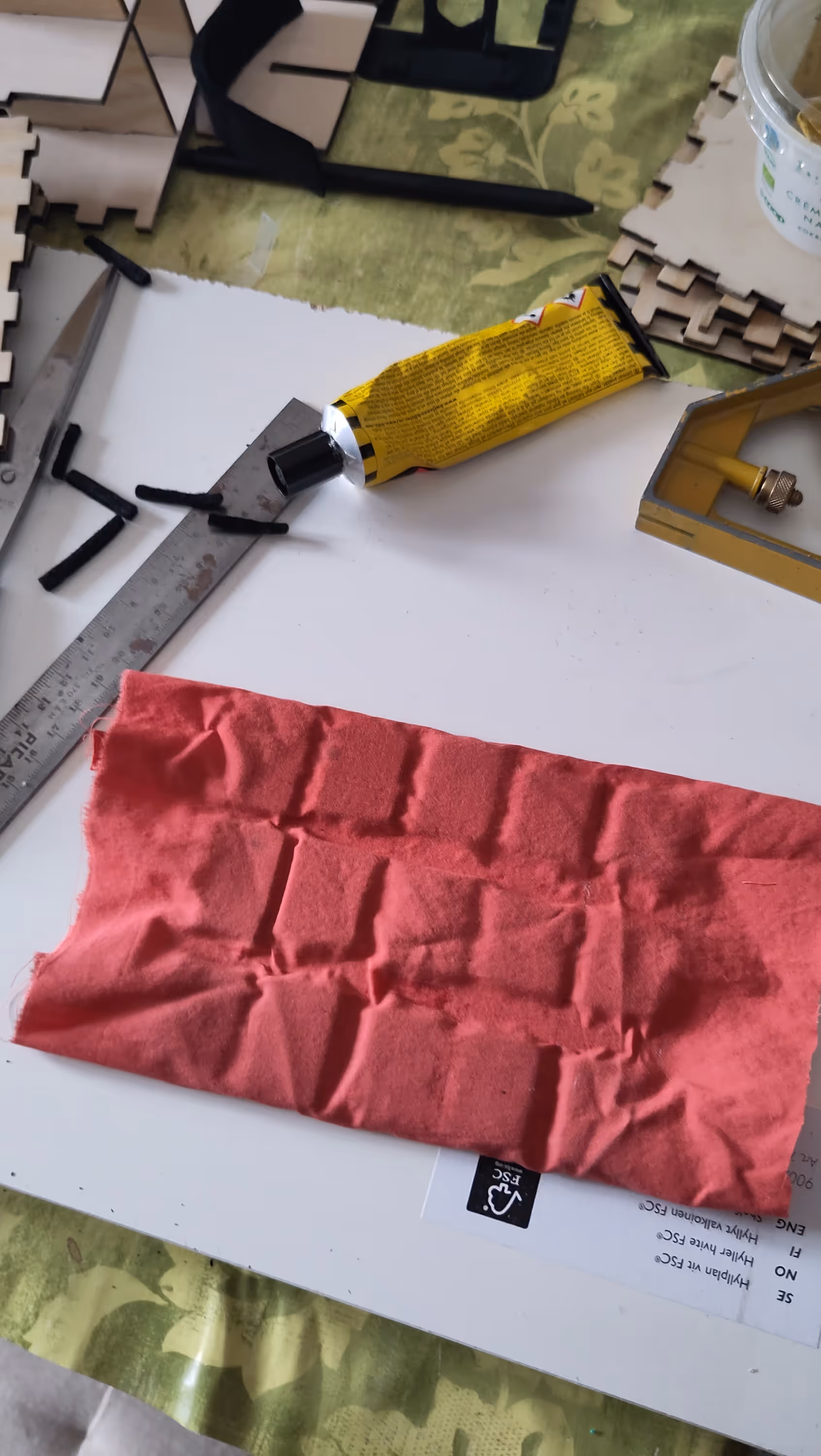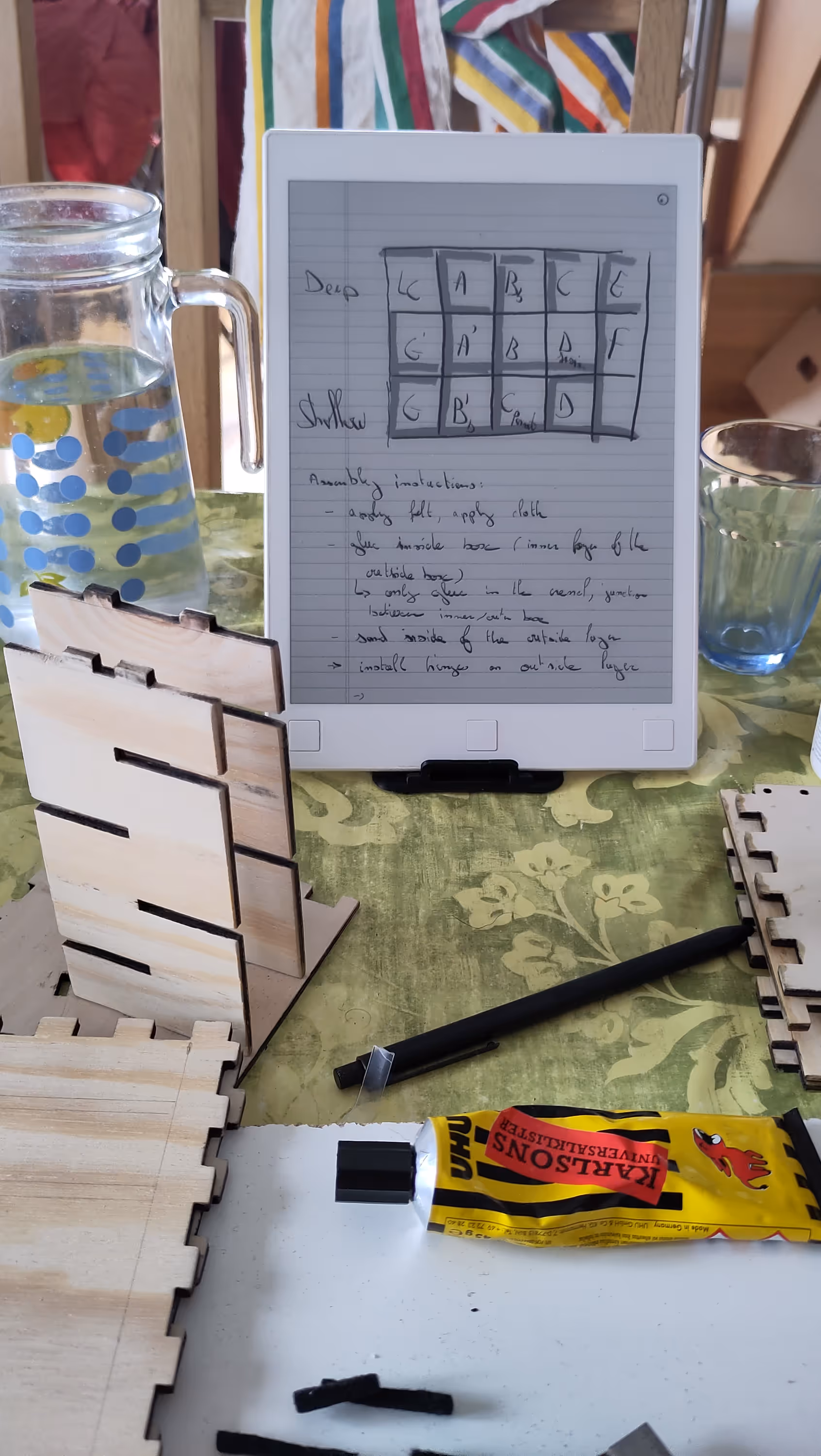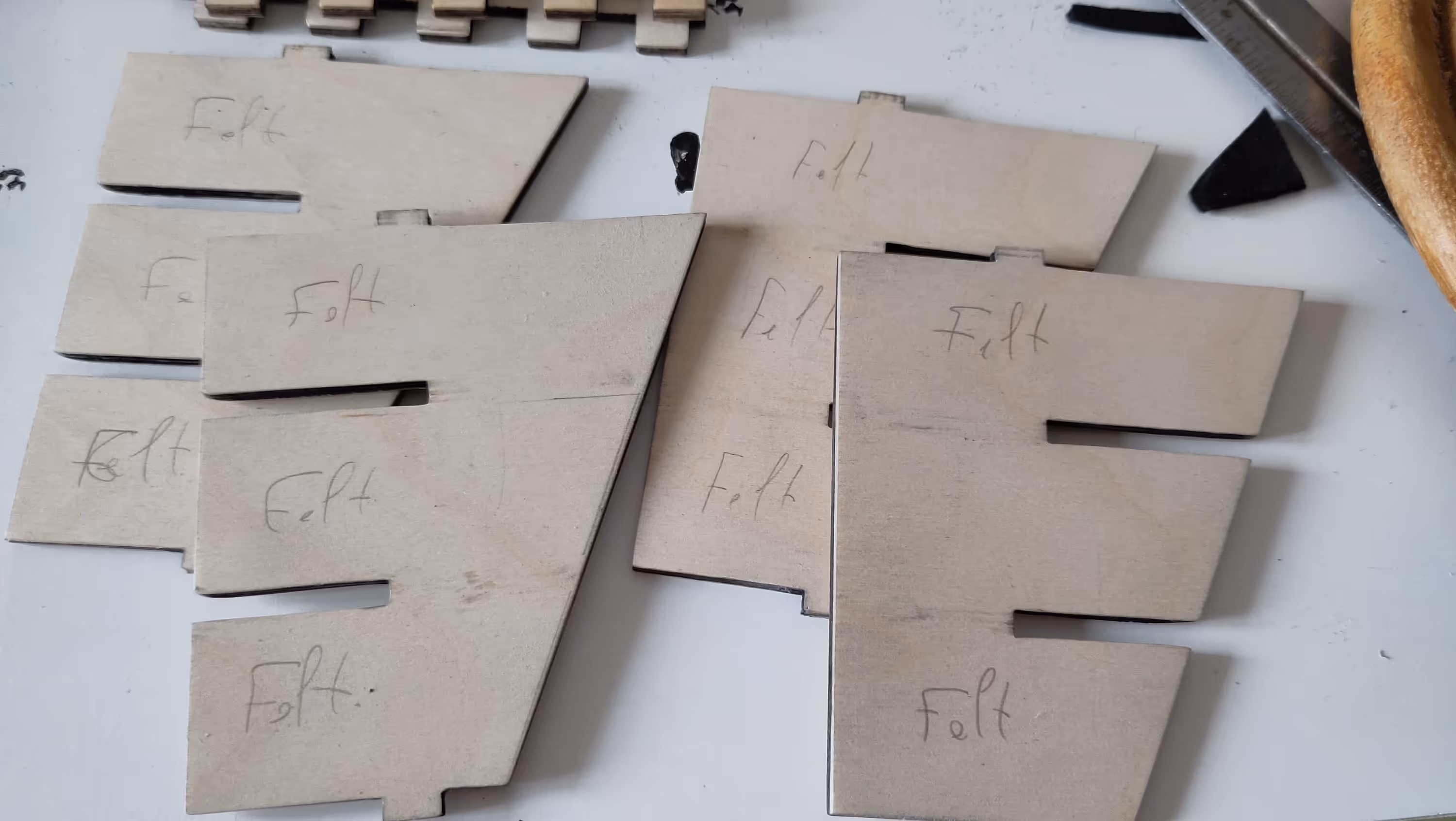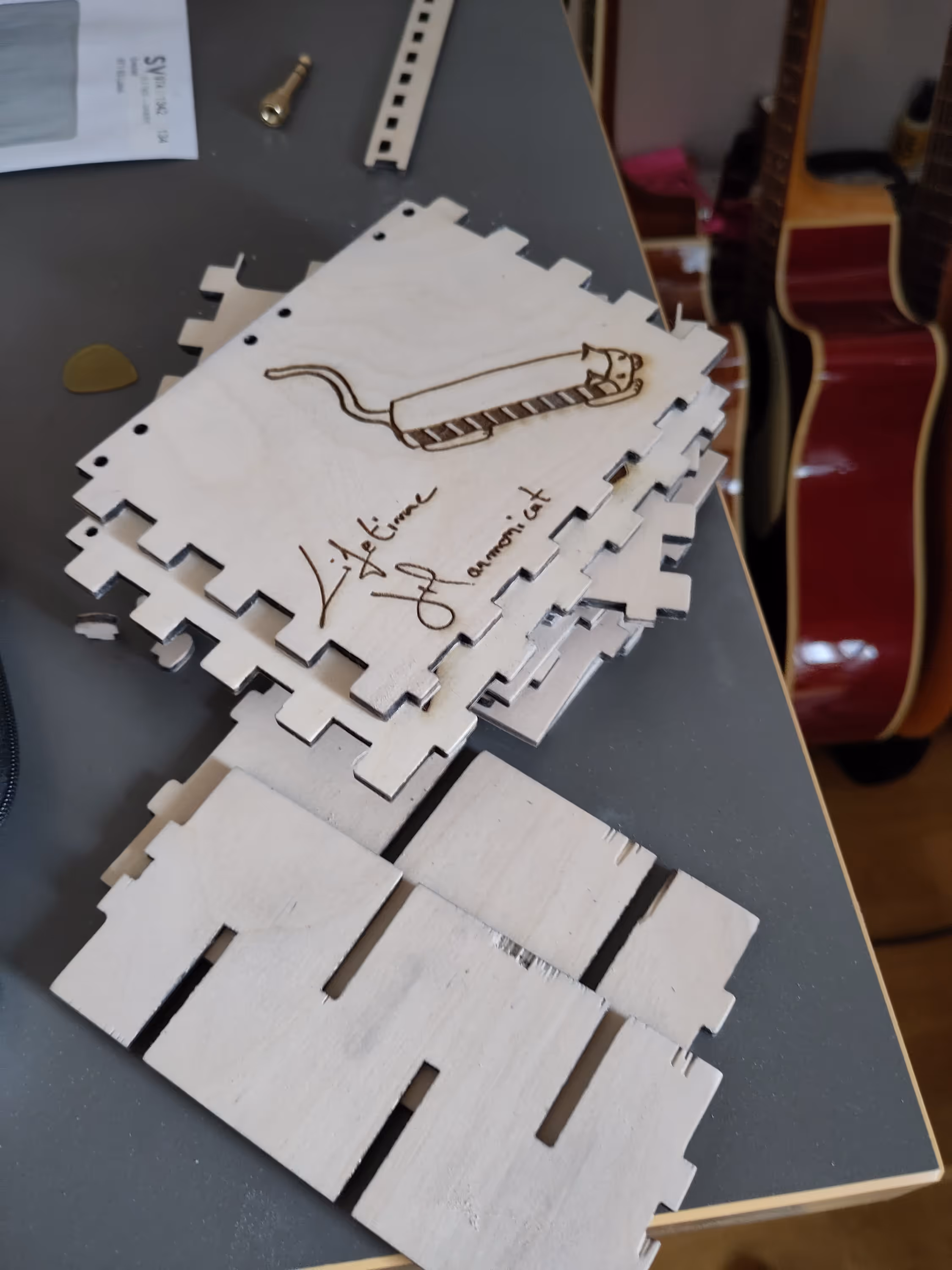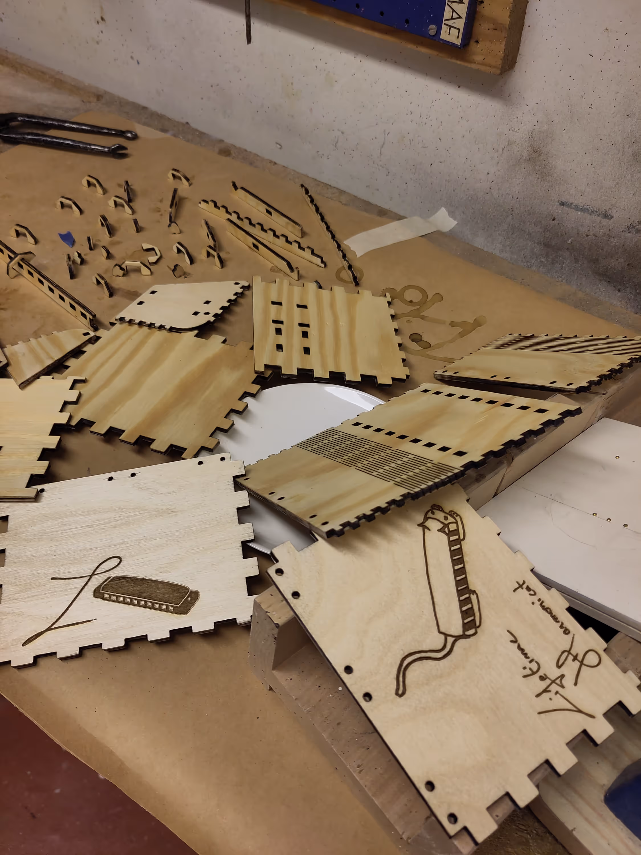 I quickly made a draft in cardboard, fixed a few things on the model and then laser cut the wood pieces.