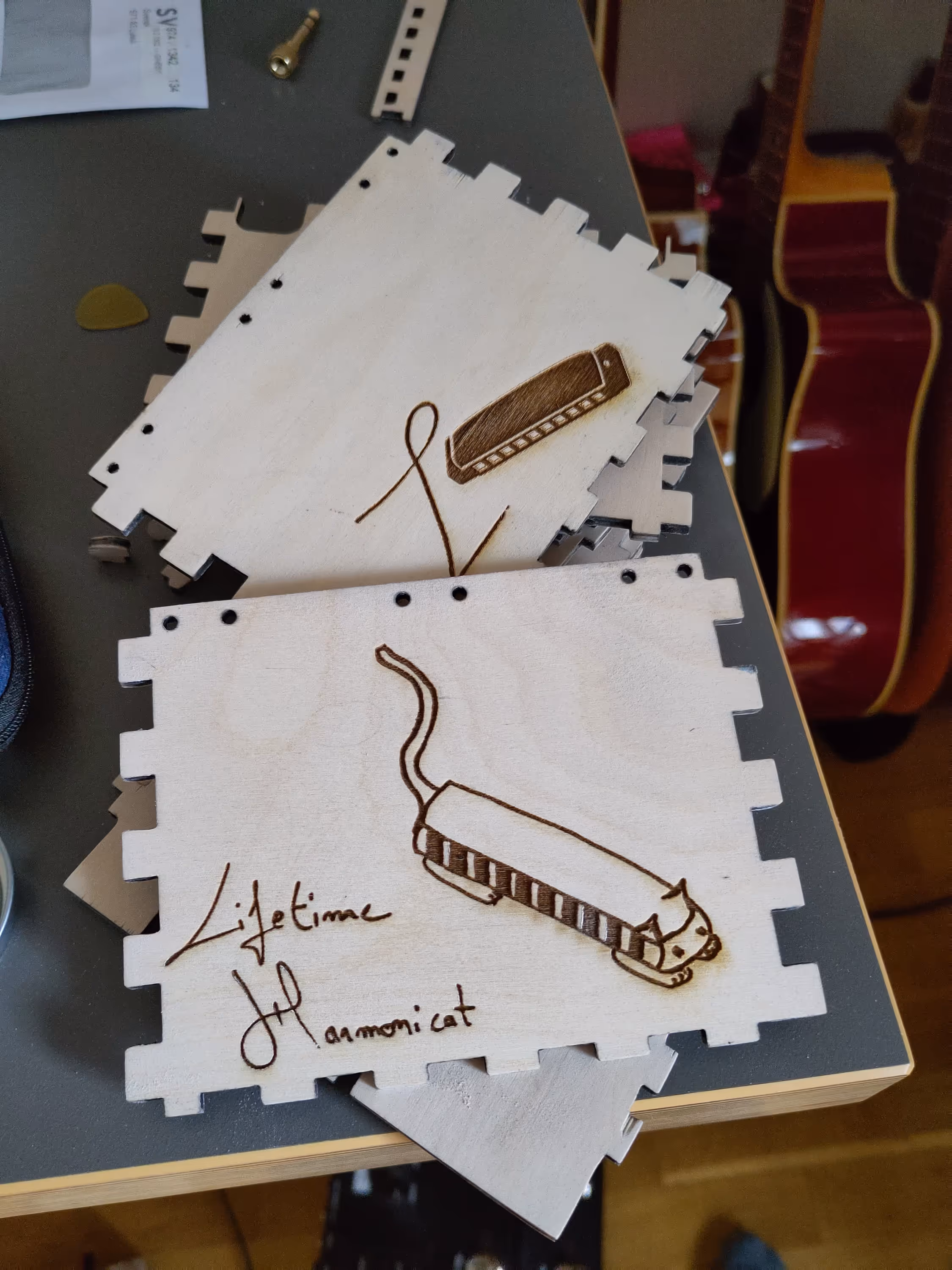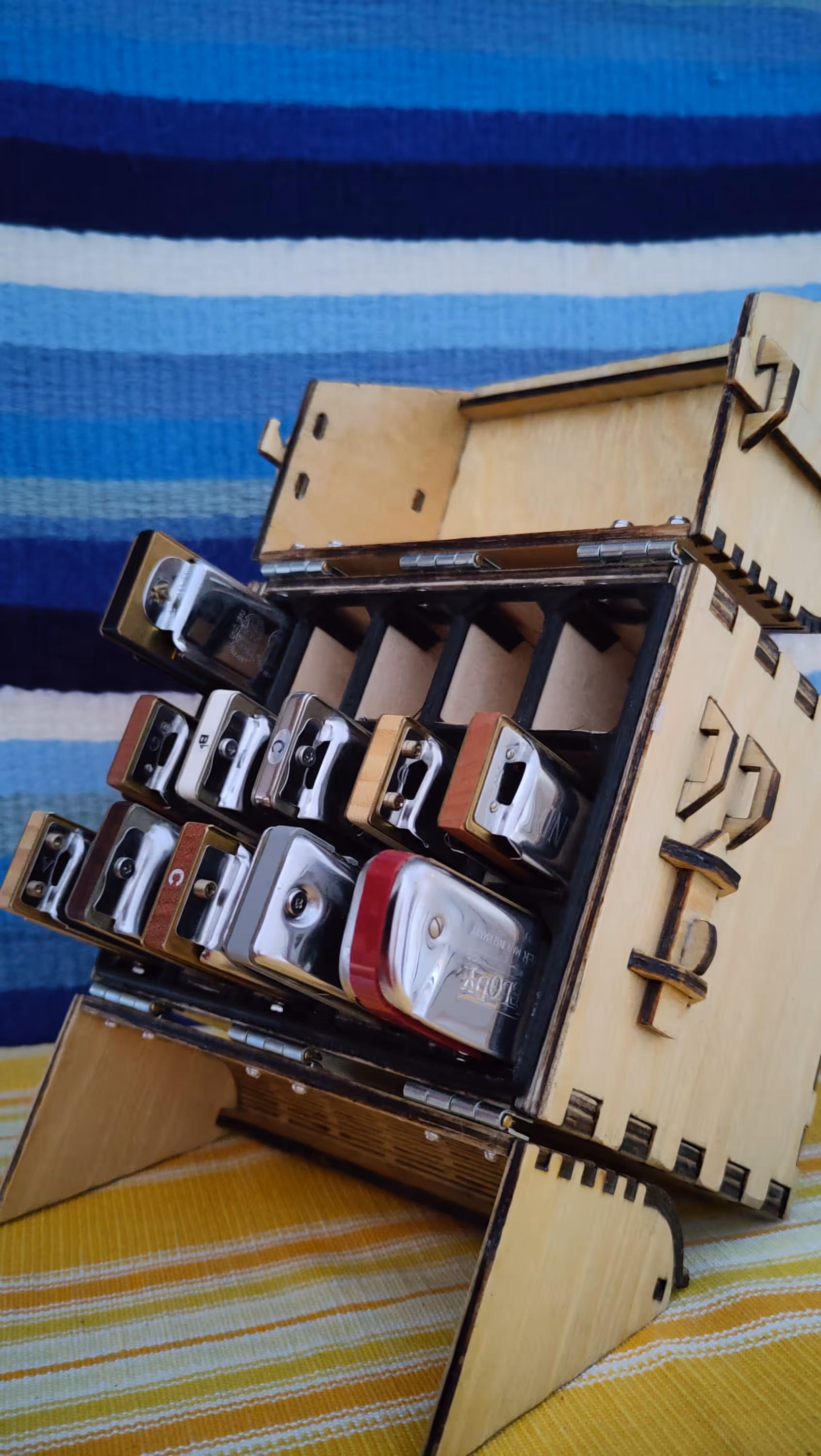For the new Harpbox, I wanted to fit more harmonicas (no kidding) and have a nicer lock system.