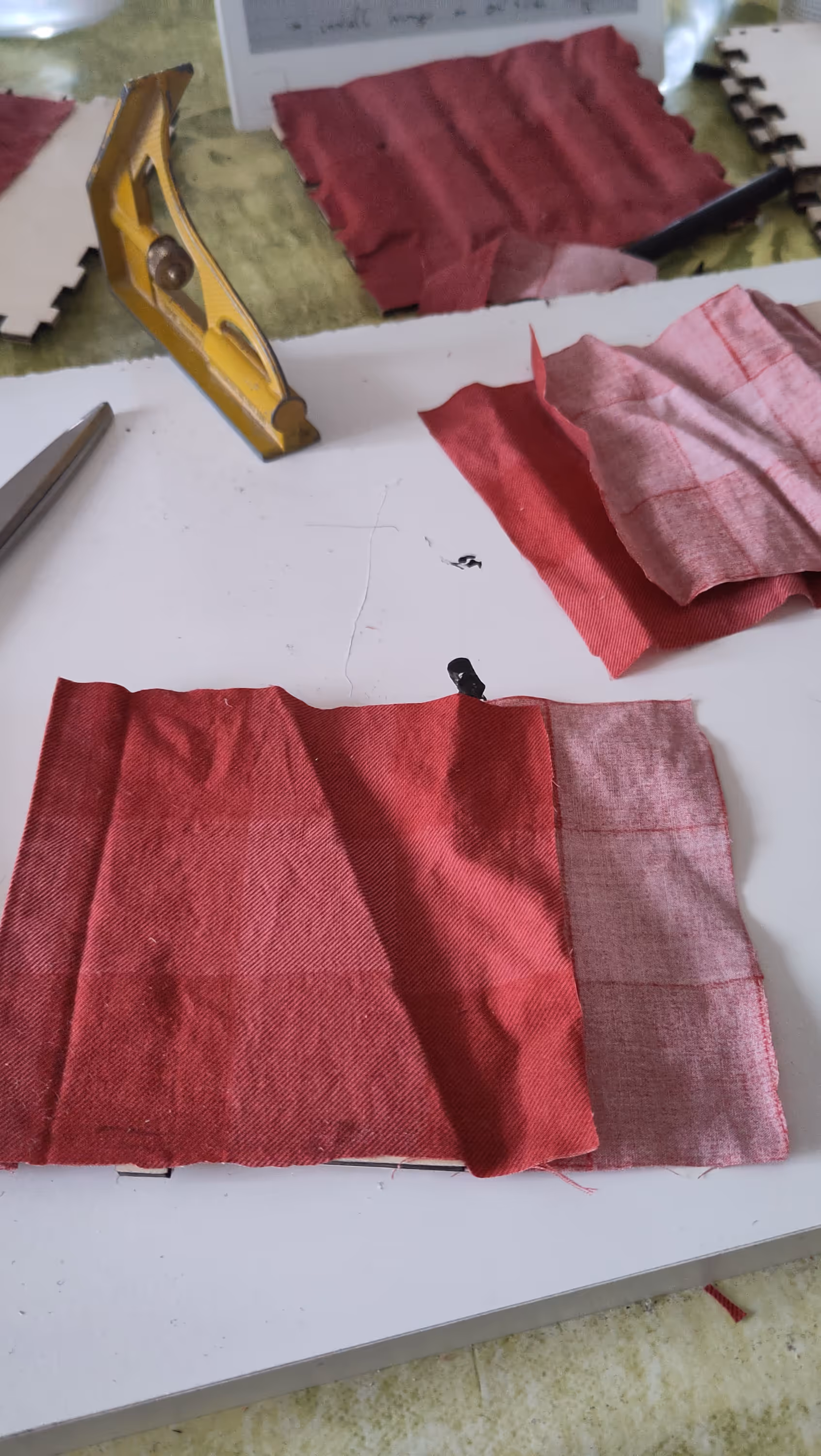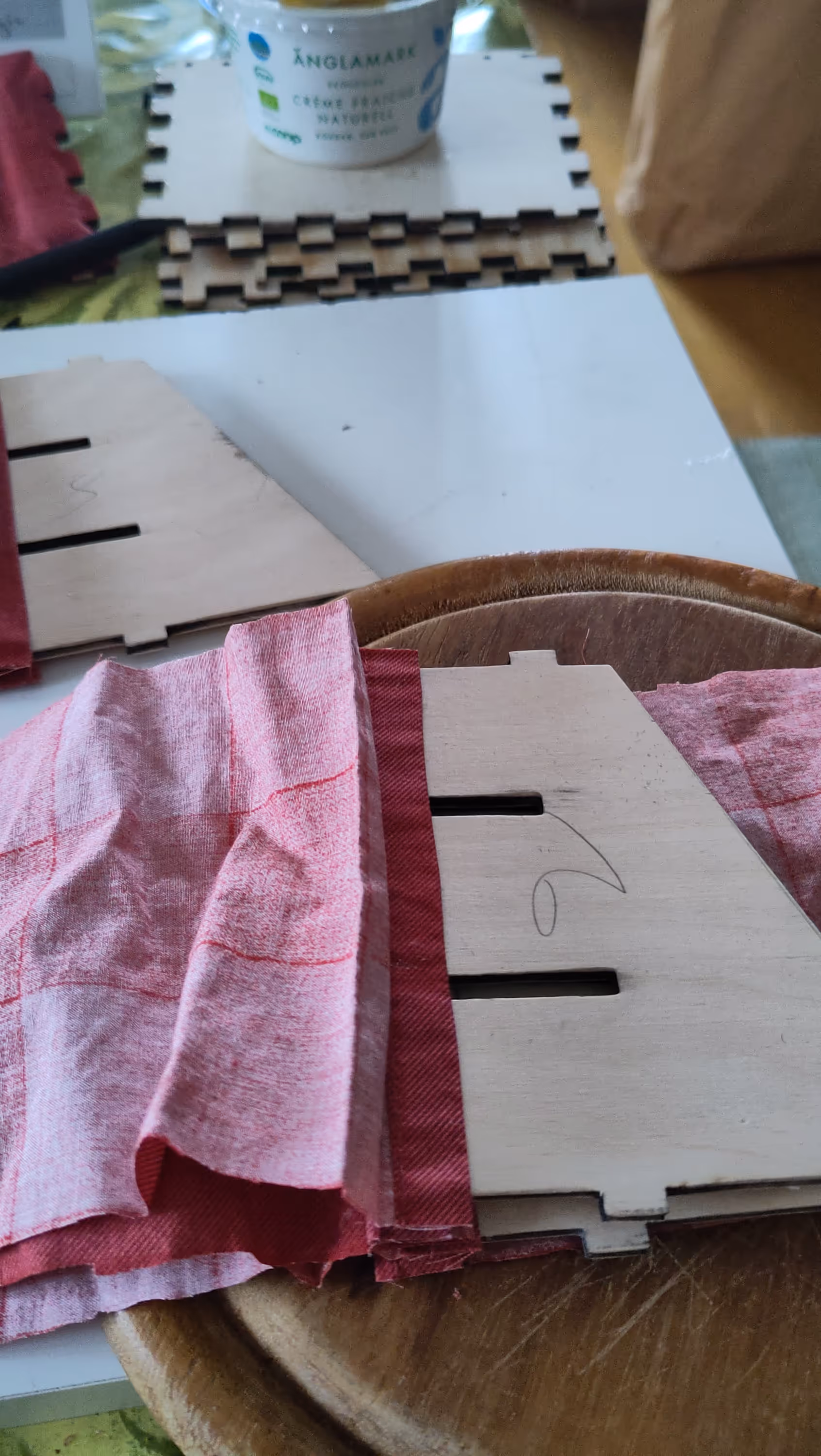 I applied some felt-padding for the bottom slant piece, and covered it with an old bedsheet to prevent the felt to spread threads on the harmonicas.