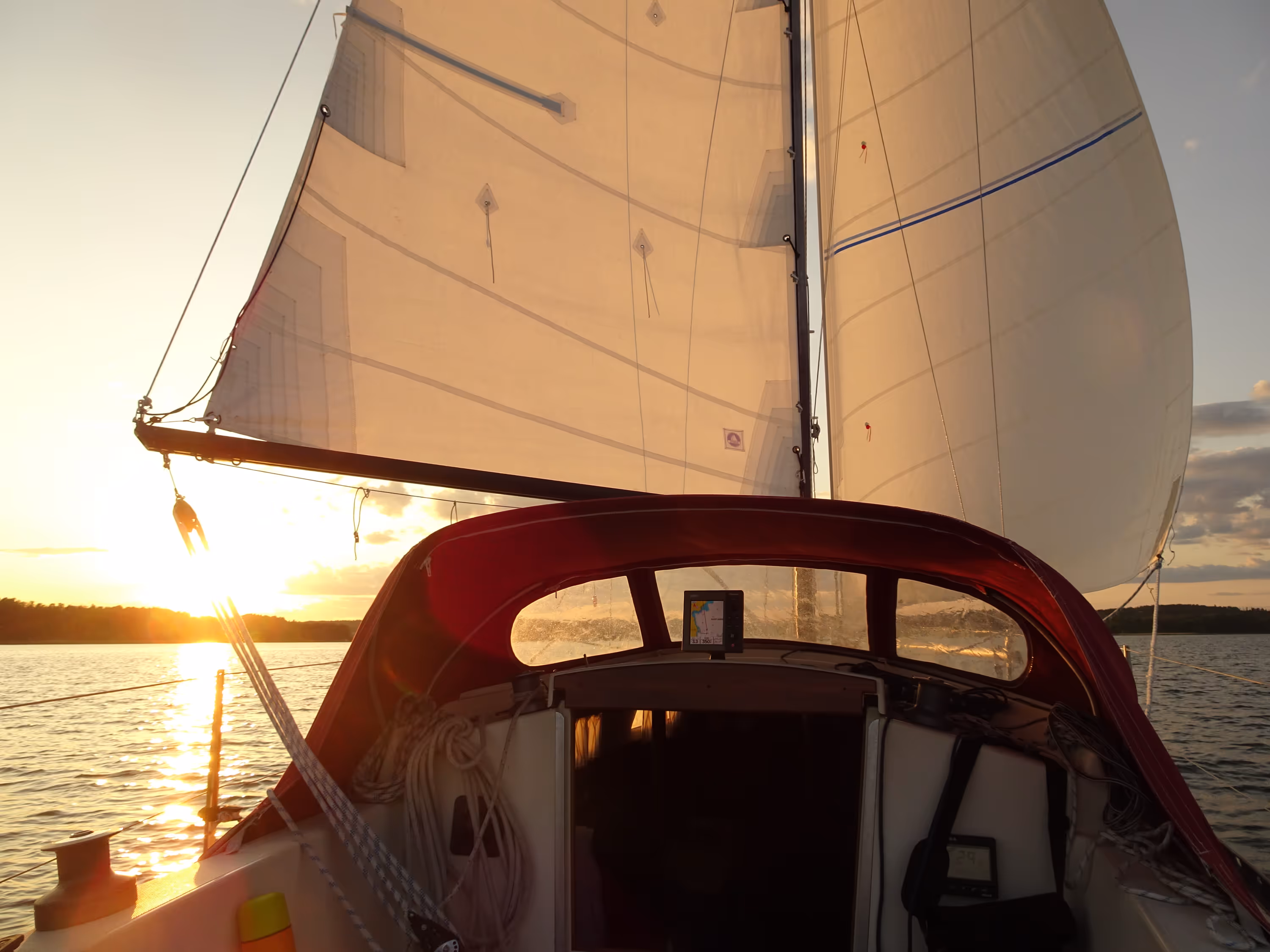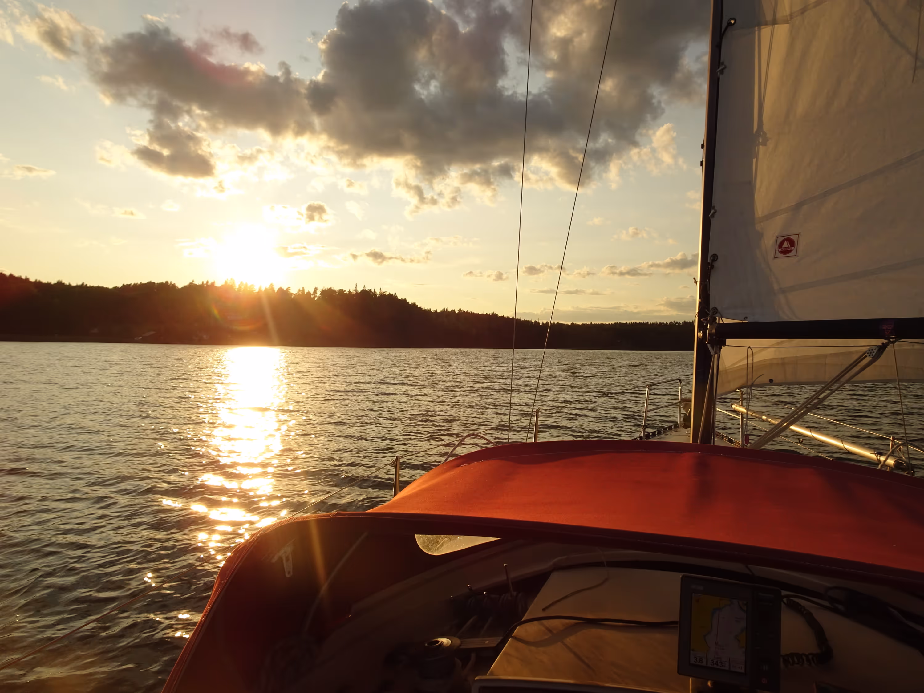 When I arrived in view of the first inlet in Fifång, I noticed the presence of too many boats to attempt to moor there with any kind of confidence and low pressure. So instead, I pushed forward to the south side of Fifång. However, with the growing sea and the fatigue starting to sip in, I thought it's better to simply round the island, put the wind in my back and head back towards the marina. I thought I might find a suitable place for mooring on the way, but every suitable inlet was busy, so I simply glided back to Grödinge båtklubb and took back my mooring on the bridge around 10pm.