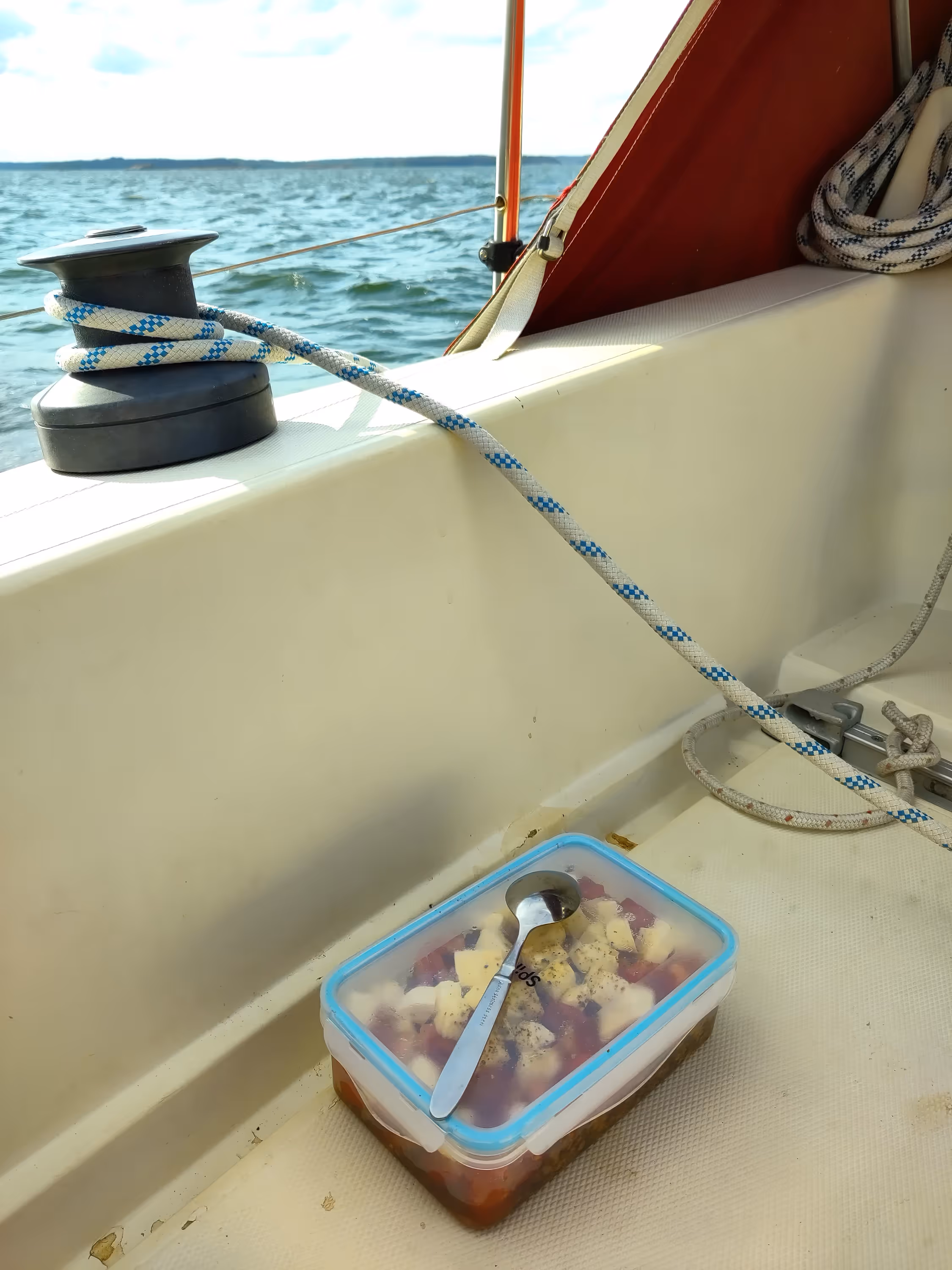 After starting rather late but with barely enough wind to get steerage under sails, the wind suddenly picked up and headed me from the moment I left the second inlet after leaving Grödinge båtklubb until the moment I rounded Fifång.