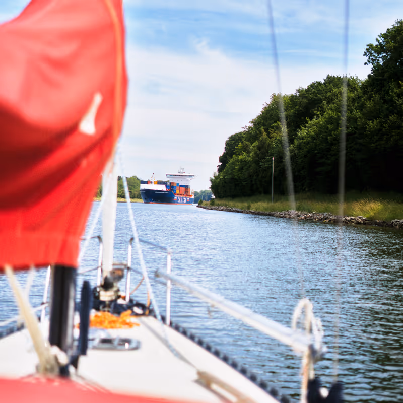 It was a bit funny on the other side. I hadn't quite decided what to do for the night. But when seeing a few other solo-sailors all eager to set sails to wash some of the canal's frustration on some salty sails (one of them even hoisted main and genoa in the lock while being untied and just floating in the middle of it), I immediately joined in! Soon enough the 4-5 of us were running close-hauled north bound to different places. One or two turned to Laboe, I then lost sight of another, and I finished the “race” on my own. It was a shortish sail but with nice gusts and there was a feeling of last day at school. Everyone leaving the lock being just very happy to be under sail and everyone waiting more than necessary to put reefs because it felt good to feel the boat heel quite some 😅. Upon arriving in Strande, it was a bit of a tricky challenge to find a spot for me and Elvira, but it worked out in the end.