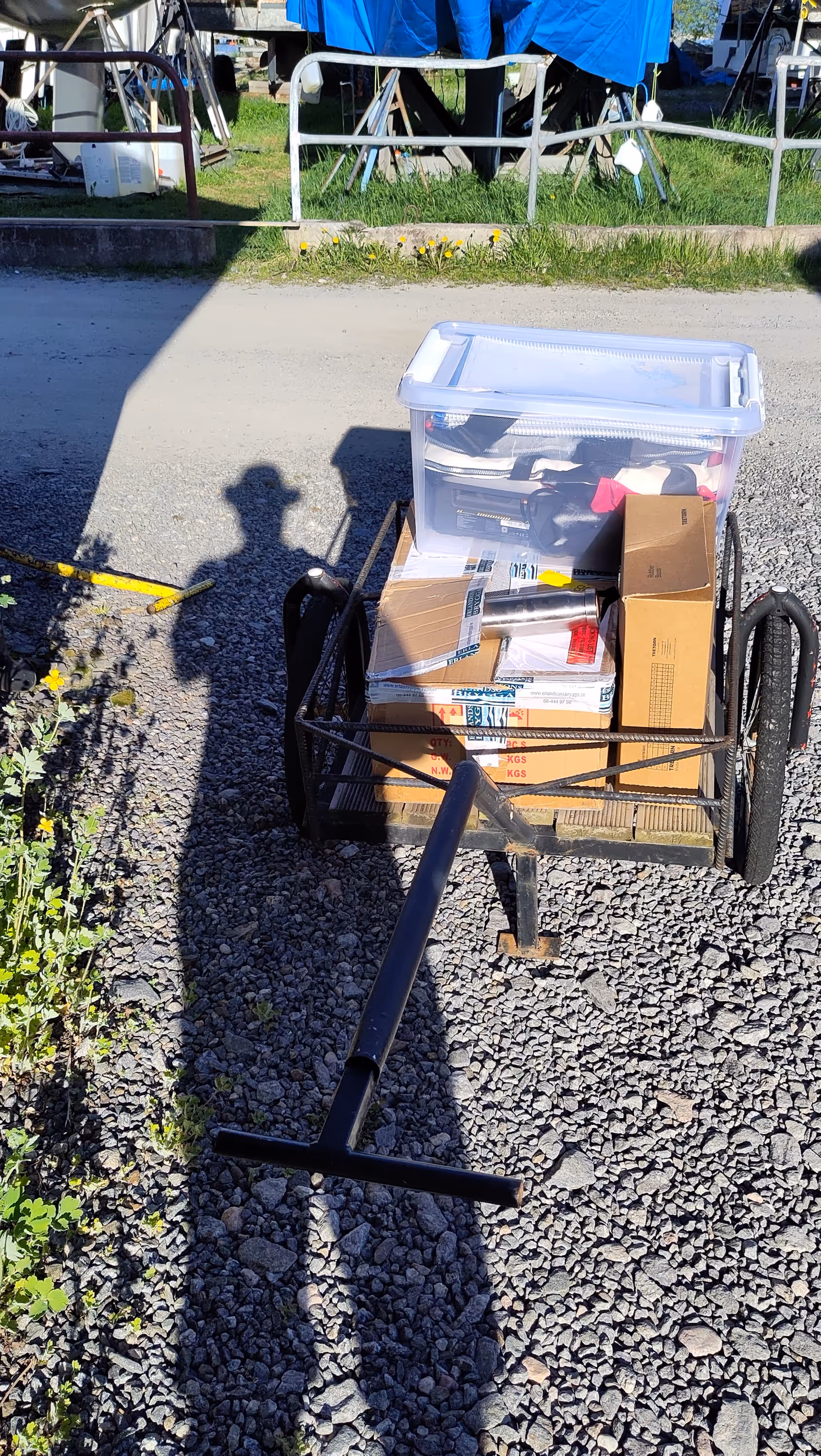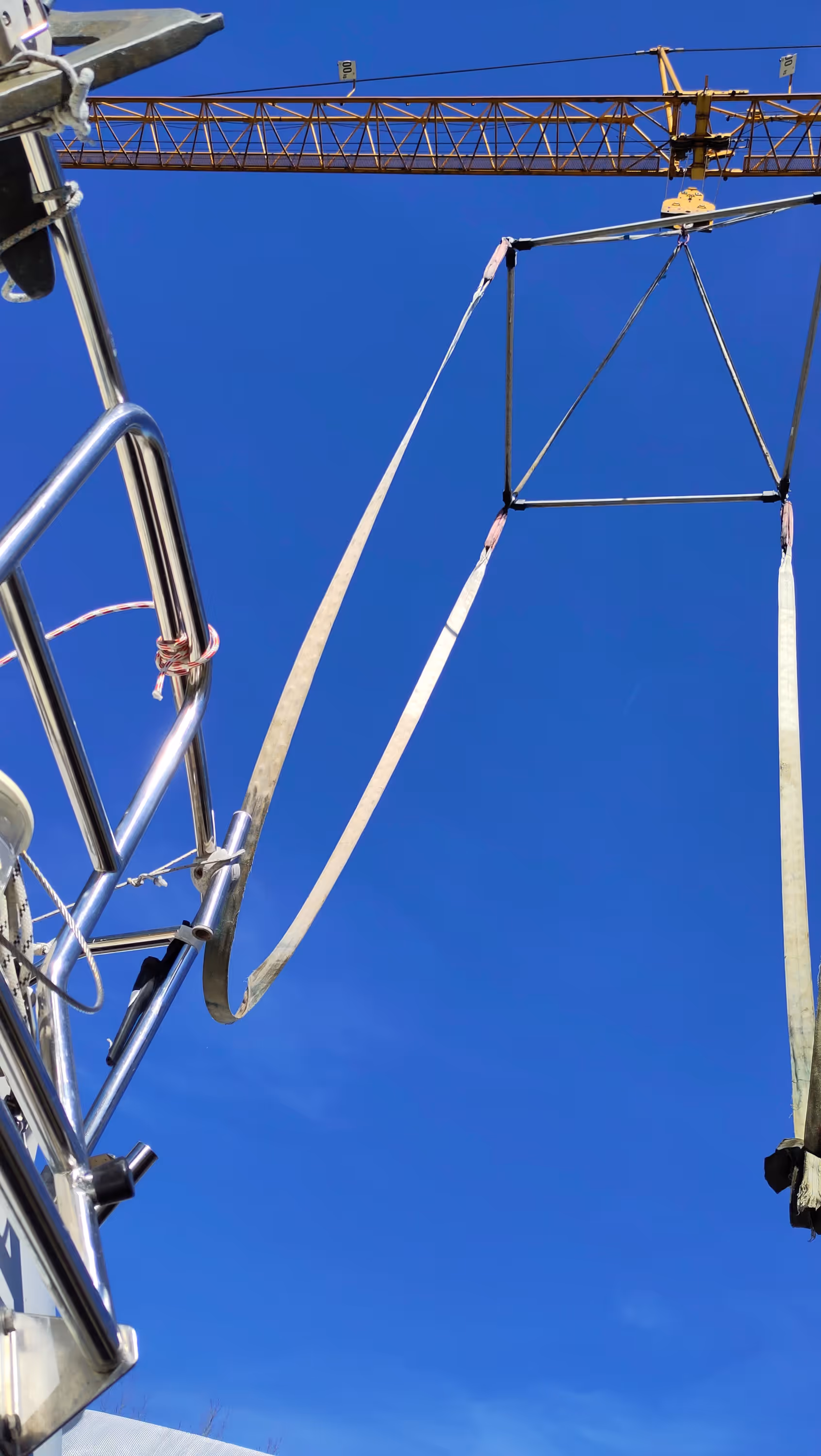 The day has come, today Elvira is going to the water. With the help of our harbour captain and a neighbour, we put on the “belt” under Elvira and started to lift off. Once in the water, quick check for any leaks, removing the belts, and running the engine for a bit. I was quite nervous to see the boat in the air, and then quite anxious to know if the engine would work nicely. After all, for most of the maintenance, I used YouTube videos to see what to do… But all went well, and I could start to empty the storage space from the boat club and to fill up my boat.