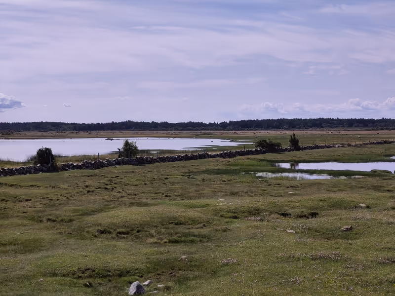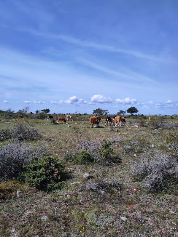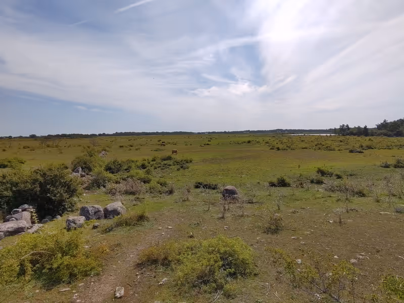 I didn't really have a proper plan to where to go or anything, I just looked outside for signs to follow, checked quickly on the Swedish app Naturkarta to see if they had suggestions. That last idea sent me to a “cycling path” through the grazing field that disappeared into marches… So I doubled back.