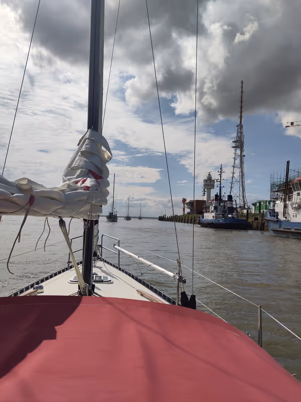 The departure from Brunsbüttel was rather fun. Every one left the marina in 2 waves: a first one early in the morning with all the boats going toward Hamburg with the flooding tide and a second one, a bit before 1pm, with everyone going towards Cuxhaven or the open sea. And somehow, all at once, we started the engines, got next to the lock, tided up inside and left.