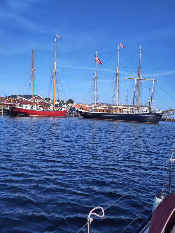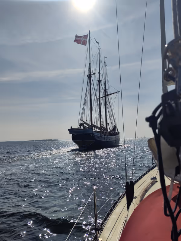 In the narrow channel to leave Marstal and head south, I was overtaken by one of these tall ships, and there was really no more space for anyone else in the channel at that moment. It was a bit stressful to see 3m on the depth meter and knowing I couldn't really give them more space even if I wanted to. Anyhow, that went quite well.