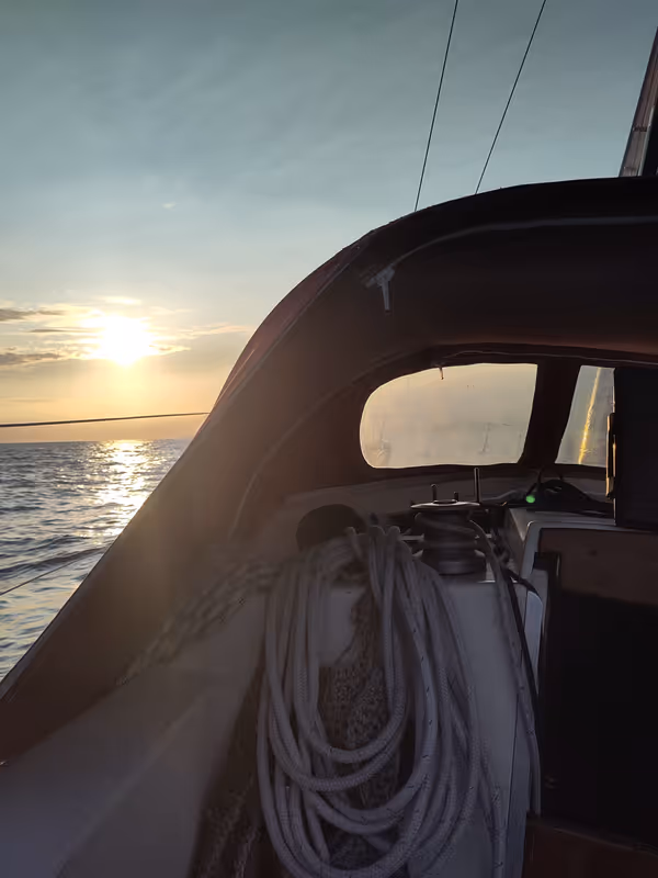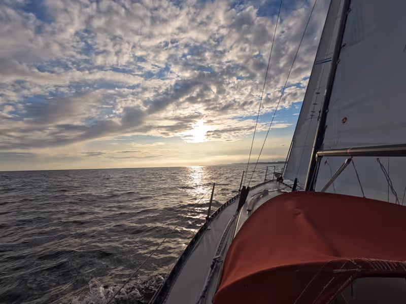 The last part of the day was a bit frustrating, the wind had decreased and was coming dead straight from where I wanted to go. Also, it felt like my tacks weren't getting me closer or not as close as they should have. Anyhow, when the sun started to set I realised I would not manage to get to Ystad (especially as the wind was really dying down, but the sea hadn't yet). So I opted for another stop: Kåseberga.