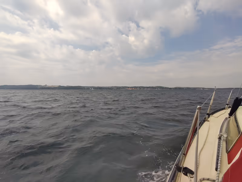 While I was preparing my boat at the approach of Kåseberga (under sails), I dropped a fender in the water. I usually never do that: I sail as long as I can, furl the genoa, start the engine, go face wind and take down the main, and only then do I start preparing the lines for mooring and placing the fenders. However, that day I'd thought why not get that done already so it'll go faster when I'm going on the engine. Served me well… So with the fender in the water, I started to try a “man-over-board” manoeuvre (with the sails still on at first), failed twice, took down the sails and tried again on the engine. After 3–4 attempts with the motor on, I managed to get it back…