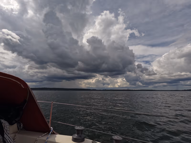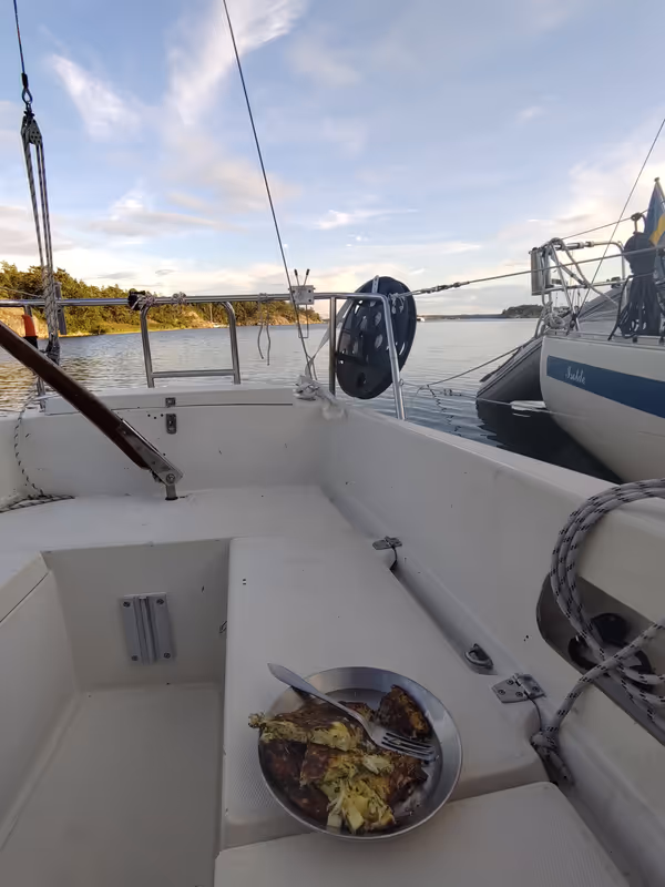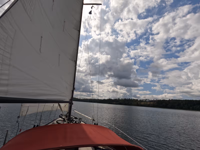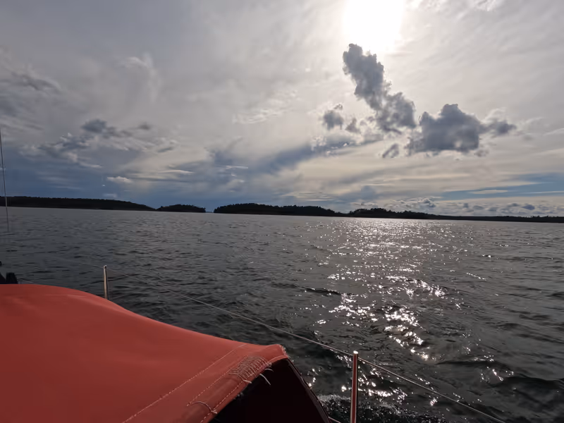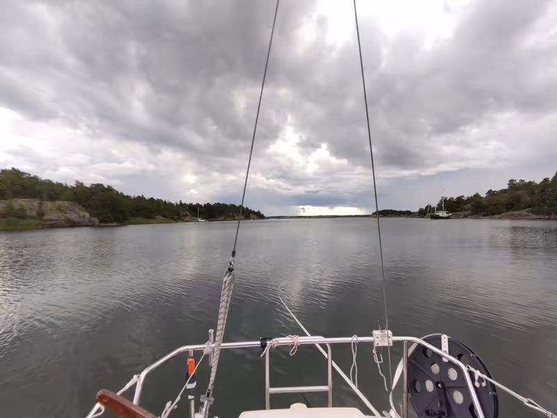 Let the voyage commence! Misadventure with the gennaker, rain shower, sun and a stop at Fifång are on the agenda.