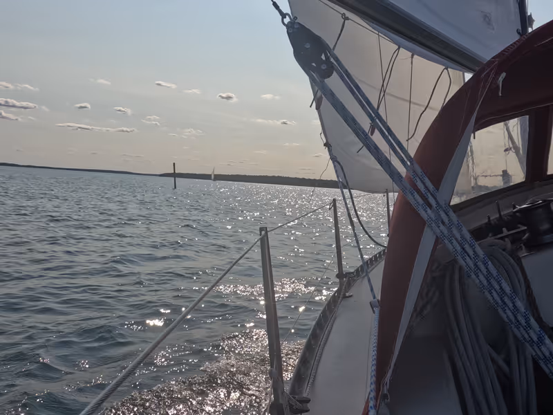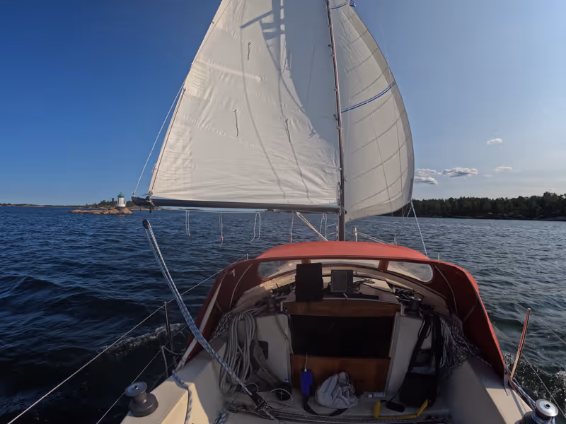 Once I had a new bottle and fill-up the diesel tank, I set sails southward. It wasn't the most relaxing navigation ever: there was a lot of wiggling around and between islands in an ever-changing wind (both in strength and direction), yet it was rather pretty and toward the end of the day the light was fantastic (again).