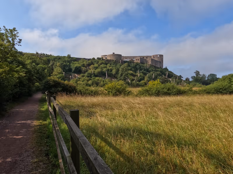 Through the trees, the castle appears