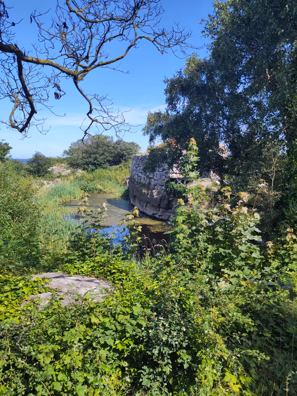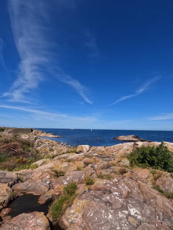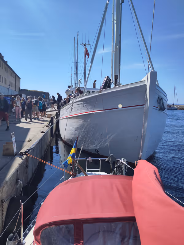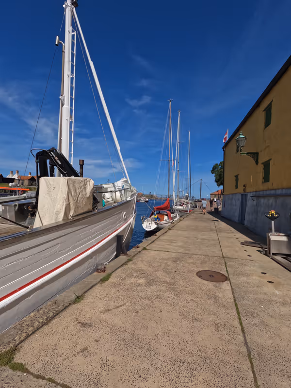 After a good night to recover from the long navigation of yesterday, I set up to explore the small islands of Christiansø. A nice slow walk along the old fortifications, the rocks, and the gardens, followed by some shopping (the tiny shop on the island had a surprisingly high amount of organic products!), and, after dumping the shopping in the boat, some more walk on the other side of Christiansø. There I stayed for a long time to help a German family that contrived to sail on top of another boat's line to a buoy and was threatening to smash in the rock. Once that situation was solved (which included, in the end, two of the Germans diving in the water to fix the messy lines), I was able to continue on my walk and go a quick visit of the tour. Then back to the boat to grab my swimming stuff and a relaxing dip in the sea.