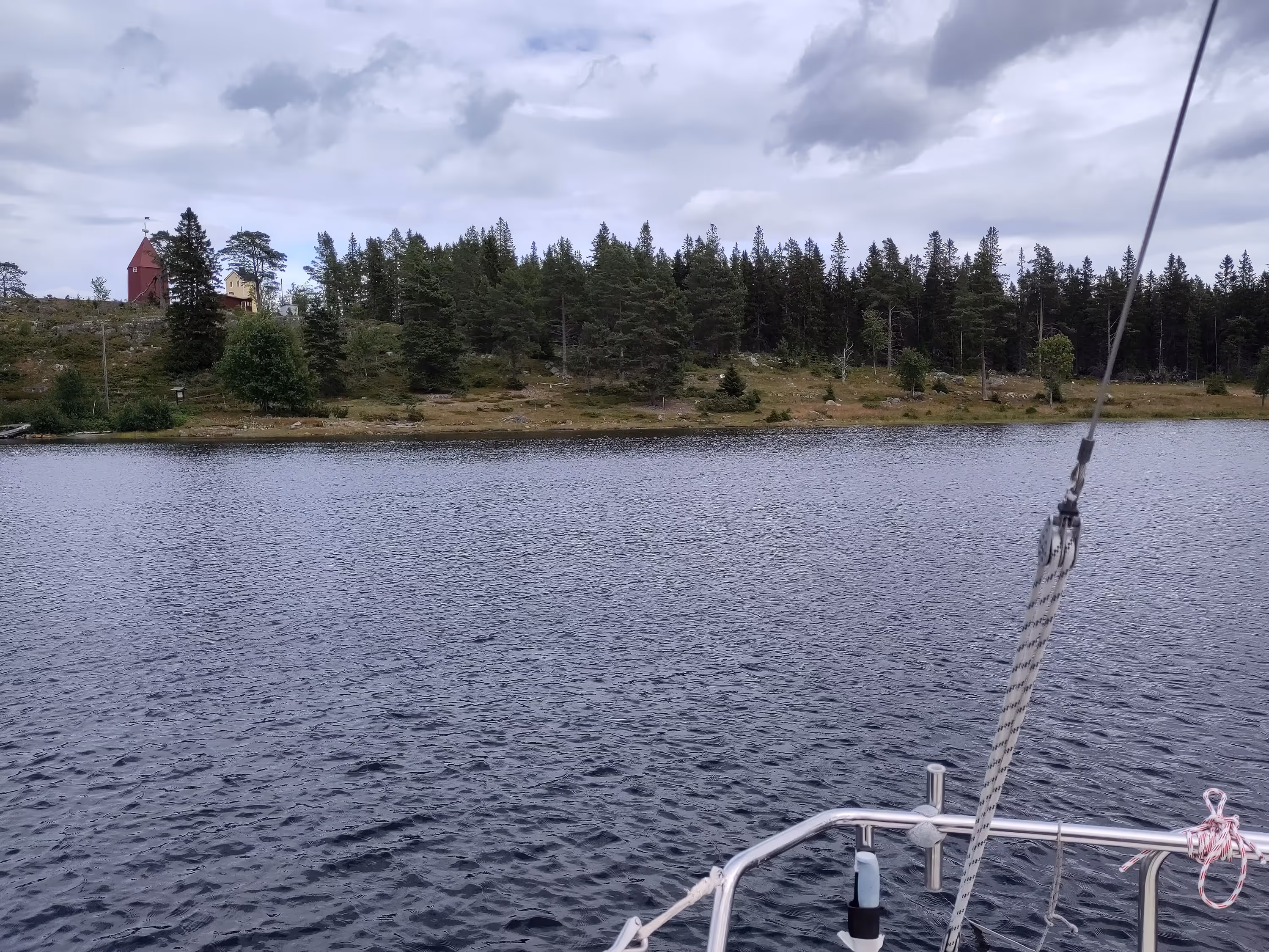 Around 3pm I thought I should get closer to the coast and start working my way to one of the guest harbours. But as I switched from the larboard tack to the starboard one, my angle to the sea changed. I was almost entirely sideways to the waves and since they were reaching 1.5-2m at times, Elvira was heeling a lot whenever she was climbing to the top of the waves, as the wind stroke the full surface of the sails. A few of the stronger gusts of wind were devilishly timed with the top of the roll, and I thought it more prudent to reduce sail again. There however I made a mistake, I thought the geona would be easier to take in and to roll out again if the wind reduced a bit. Once I had laboriously done so, I realised that my double reefed mainsail didn't allow me to get enough speed to have stirring in that sea… Since I had already been sailing for 6h 30 min, I thought it was best to take in the rest of the mainsail, put the engine and use the motor to reach my destination: Ratan.