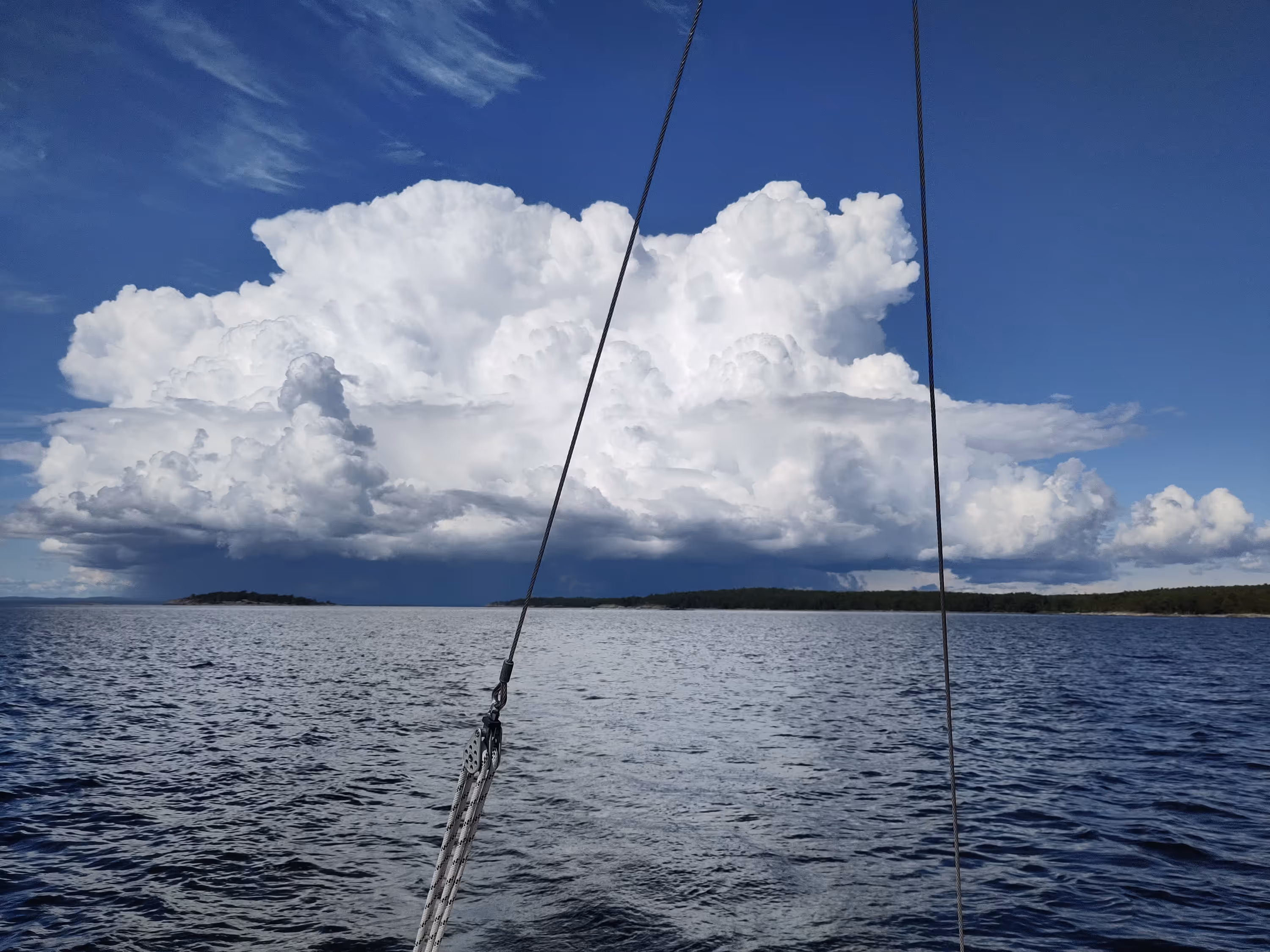 Like the other days, there was just enough wind in the morning to get going. After rounding the island I had spent the night on, it was a nice succession of broad reach tacks while the sea was increasing a bit.