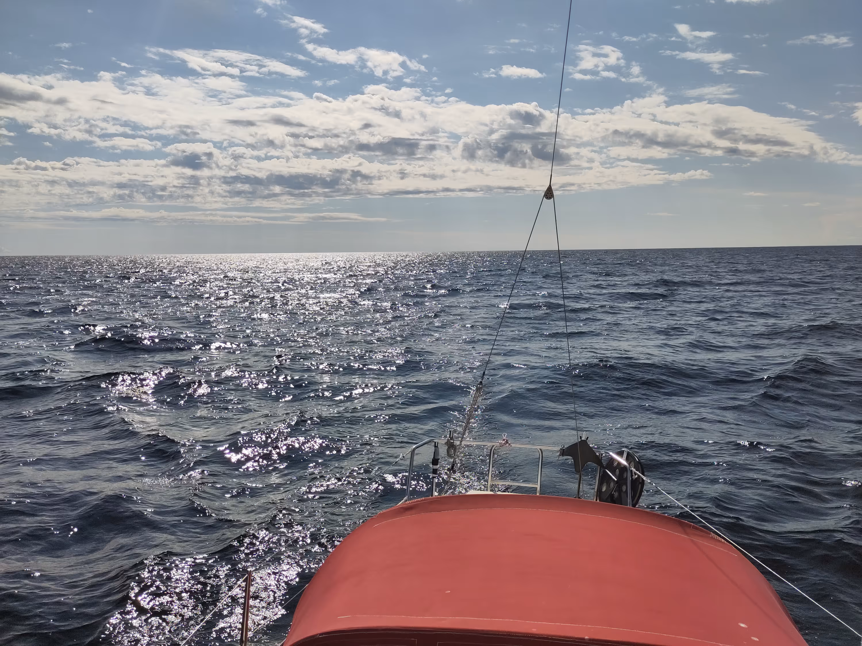 When I woke up this morning, I spotted another neighbour on the docks, the nice wooden boat from 2 days ago. I think they arrived late: at least they weren't at the dock when I went inside my boat for the night and I don't know when I fell asleep, but I didn't hear any engine noise before. While it would have been fun to talk to them, when I had everything ready for the day and there were still no signs of movement aboard, so I left. The forecast said the wind was going to make a 180 and blow softly from the south. So I wanted to be on the sea for that, ready to use as much as I could before it calm down for the night again.