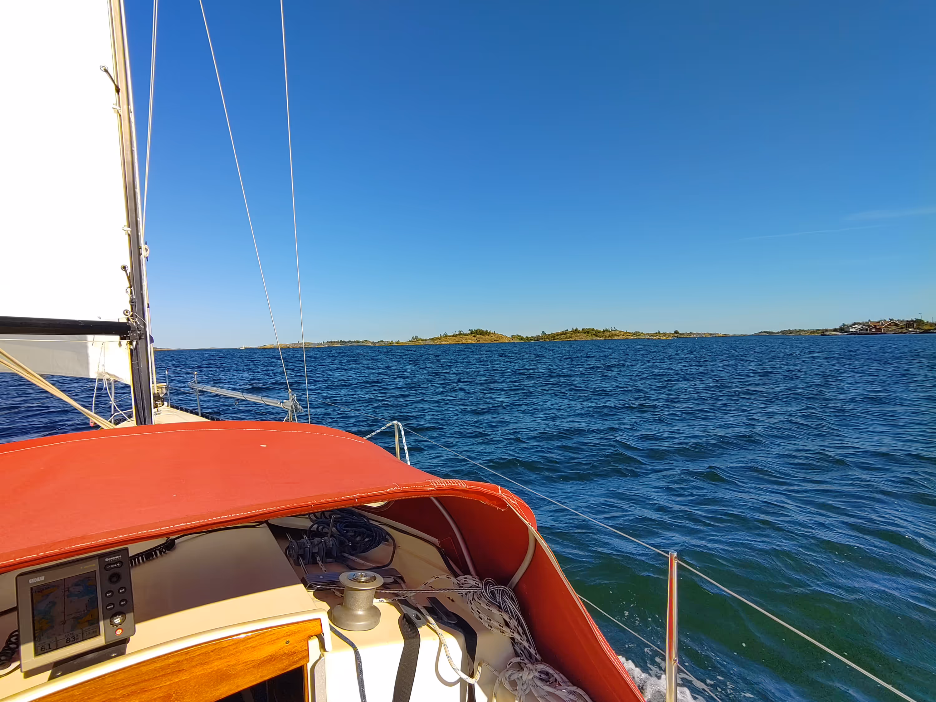 Once I had passed Fifång I was in uncharted waters… well not quite. I have charts obviously and the GPS plotter guided me through a small part of the maze (Stockholm's archipelago). At some point, though, it told me to follow a path that for a long while looked like going straight on rocks. Sure enough, there was indeed a path in there somehow, and I emerged on the other side of the rocks unscathed.