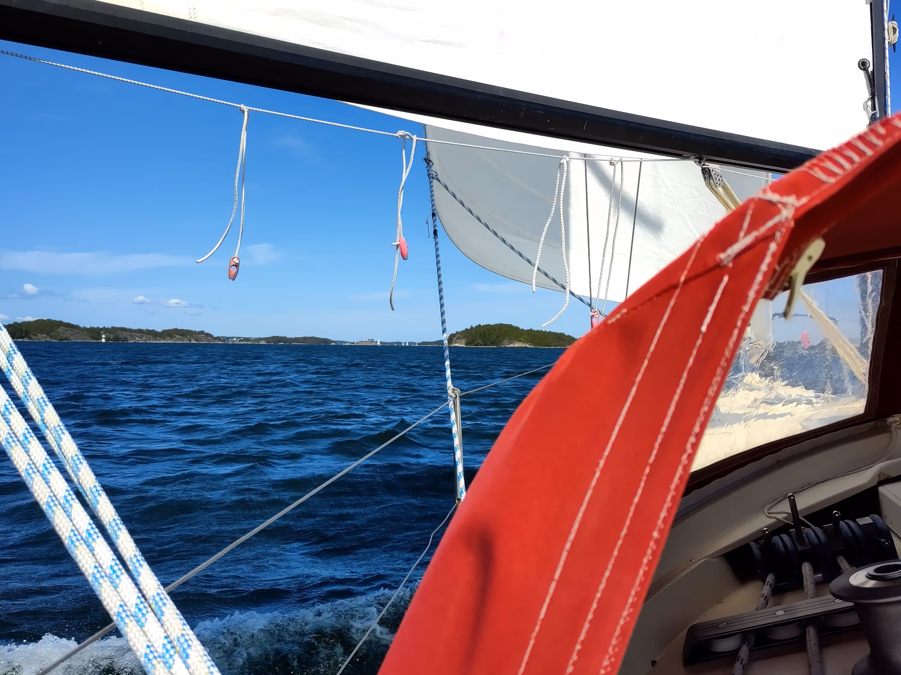 Today was mostly about surfing and not running into small islands. The conditions were quite good: good wind but not too strong, generally pushing me in the right direction, some waves but also in the right direction and Elvira loves to surf!