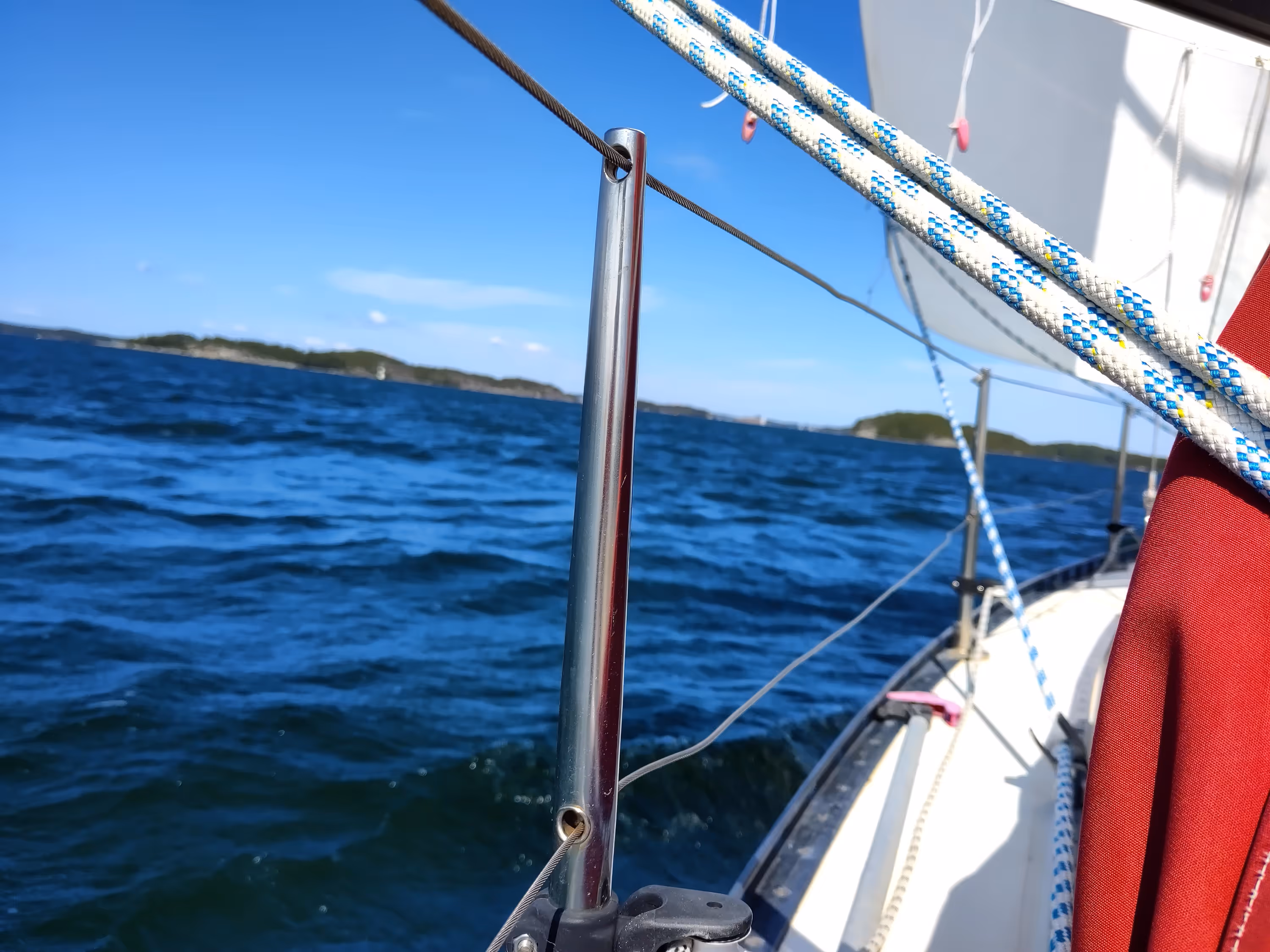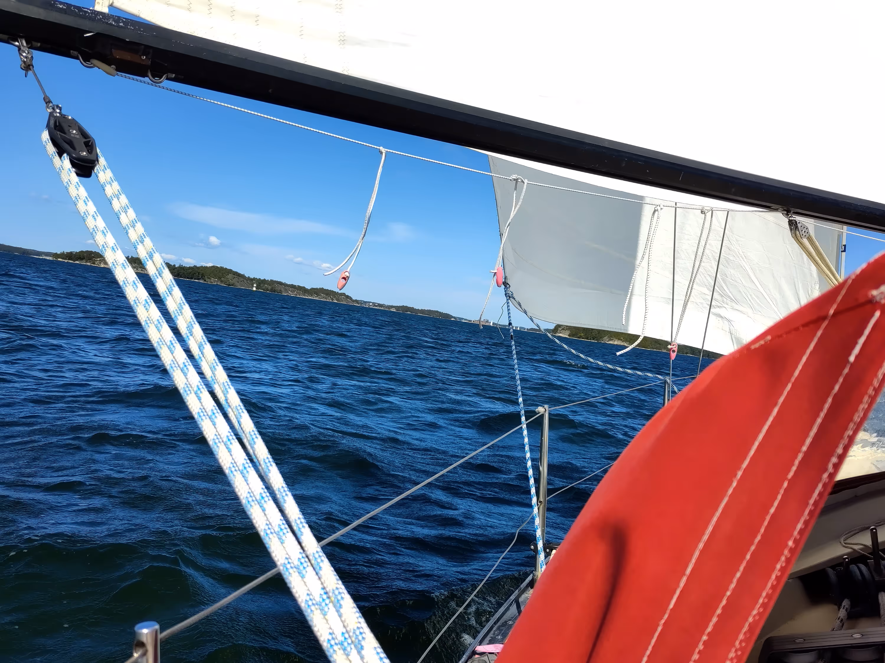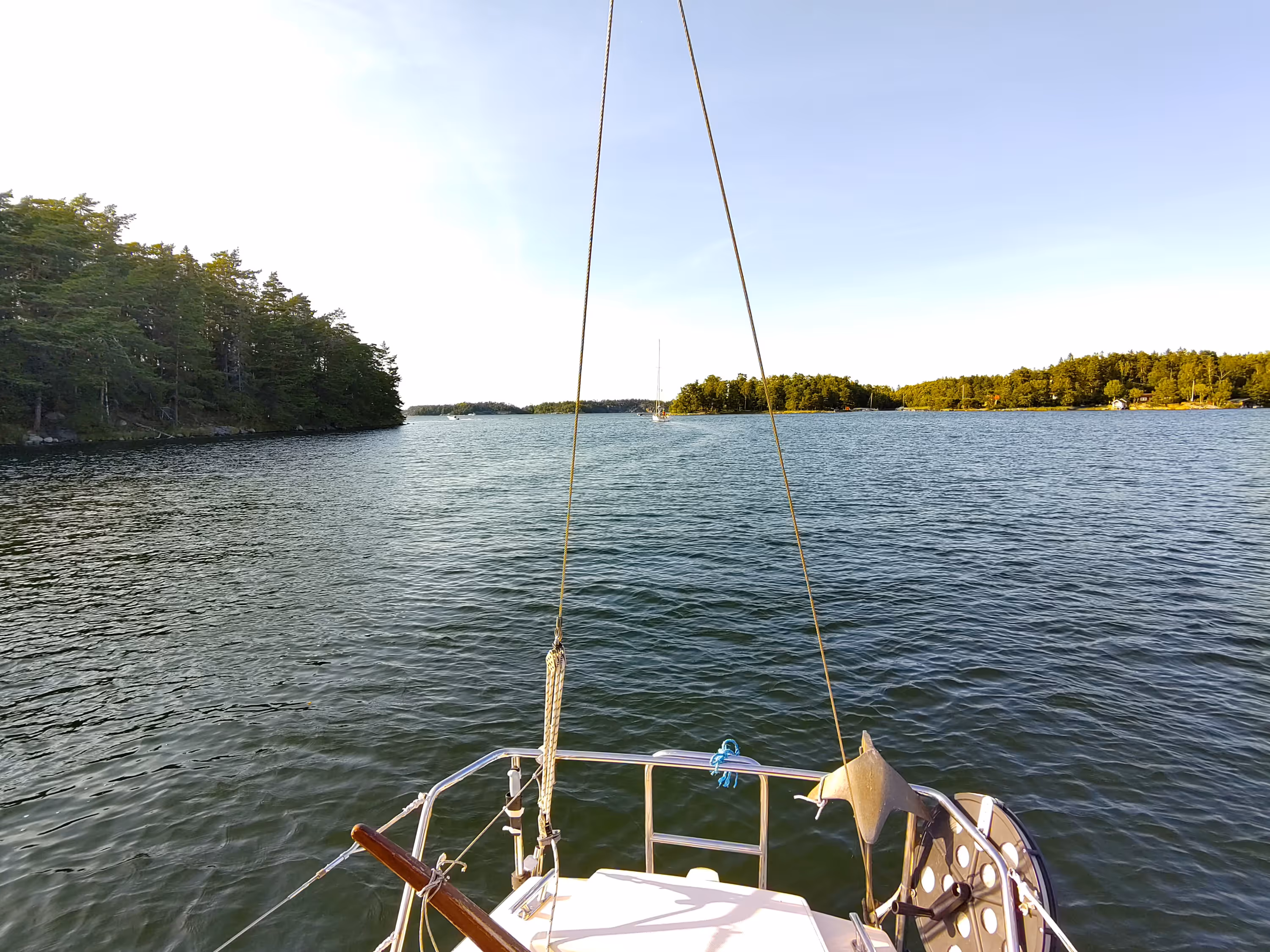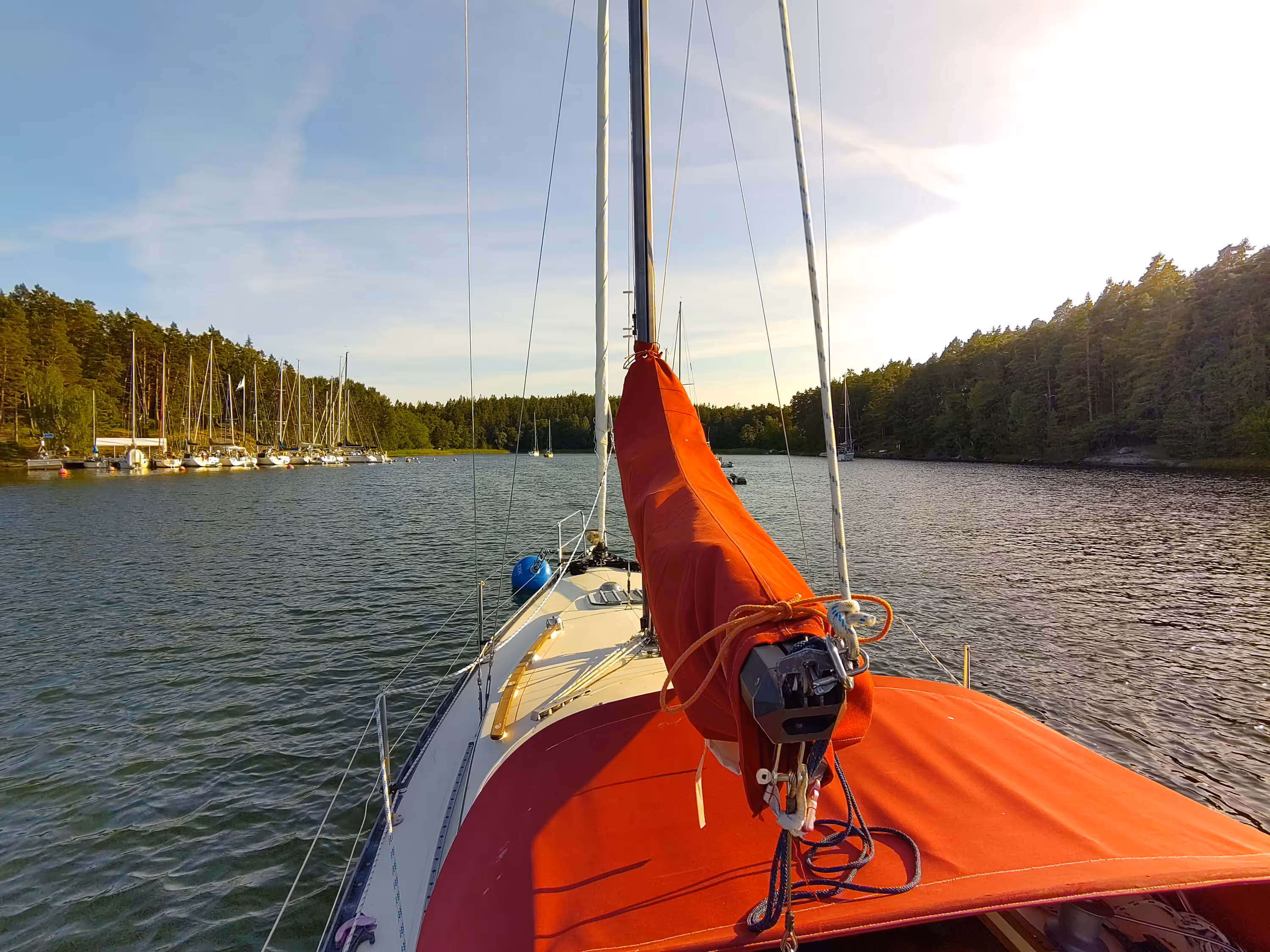 So some 6h30 of sailing later and almost 36 nm, it took down the sails and approached a small bay (Norrviken in Runmarö) where there are buoys maintained by an association (Swedish cruising club). As a member in this association, I can stay at those buoys for free, and there are some all over Sweden. Fortunately there was one last left, so I took it, cleaned up the cockpit and took a small dip in the sea! 🩳