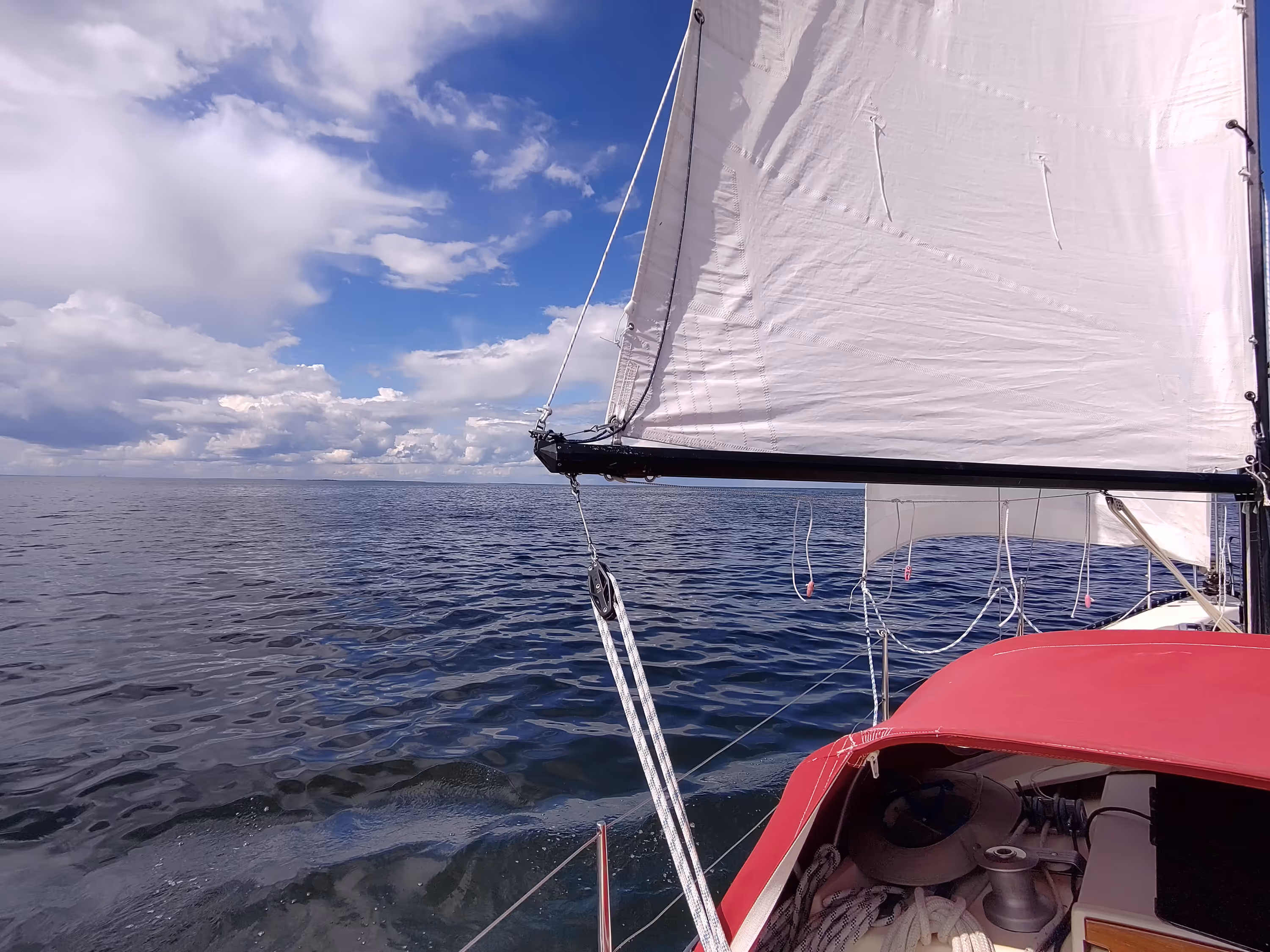 At last, the wind started to establish itself, but not on a broad reach as the forecast said it would, but darn close to close-hauled… but at least it didn't disappear again until I was almost there!